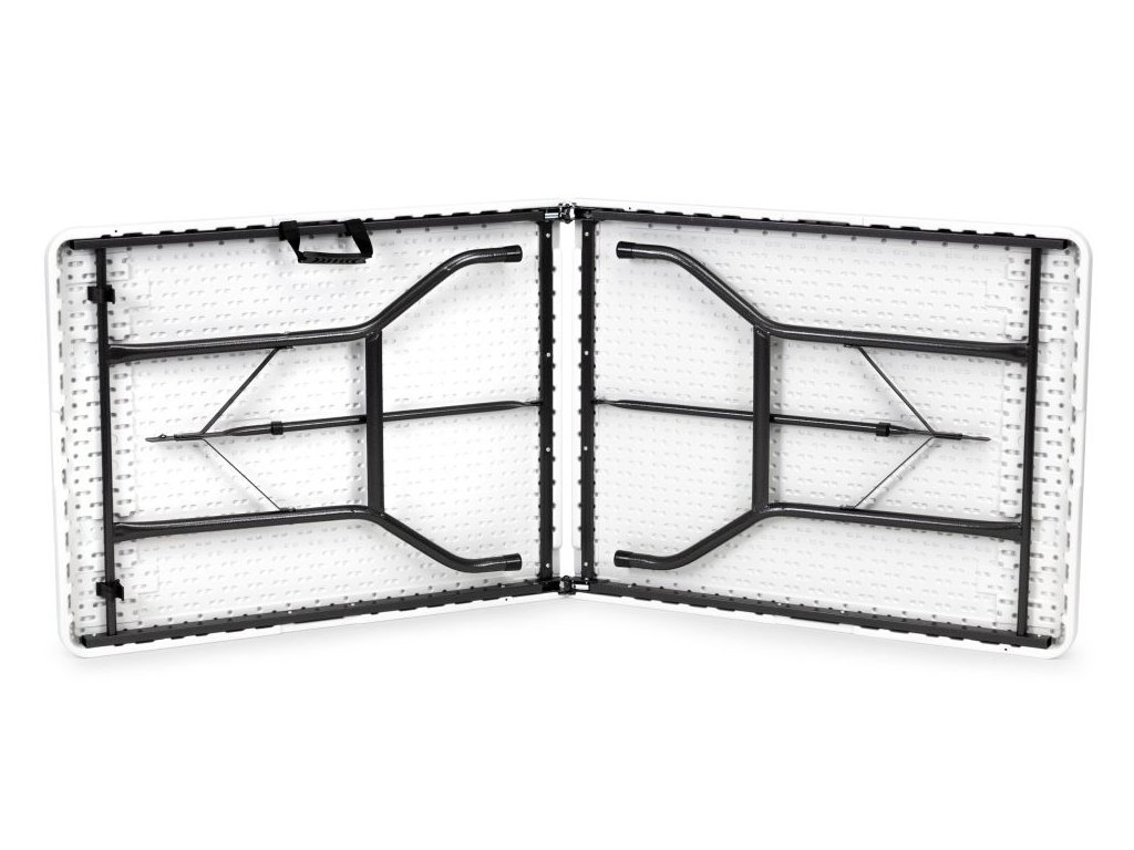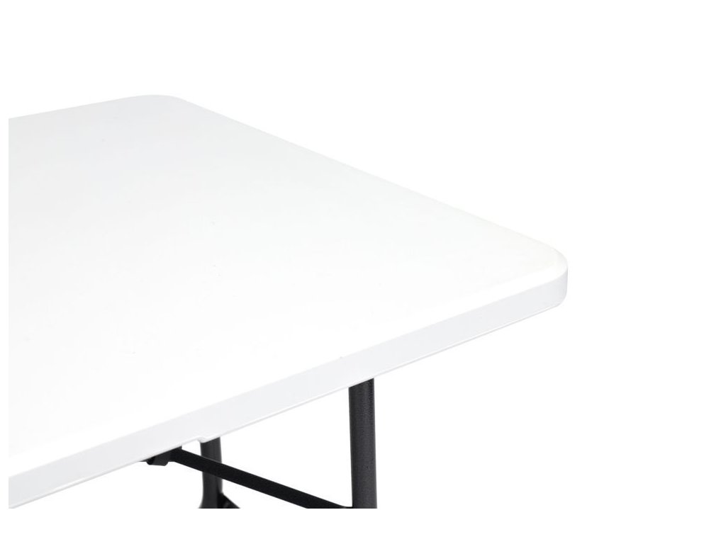 Doska stola je vyrobená z odolného voči poveternostným vplyvom a mechanickému poškodeniu HDPE, vďaka čomu bude nábytok slúžiť mnoho sezón. Kovový rám poskytuje dostatočnú stabilitu a vďaka nemu stôl vydrží zaťaženie až 100 kg.