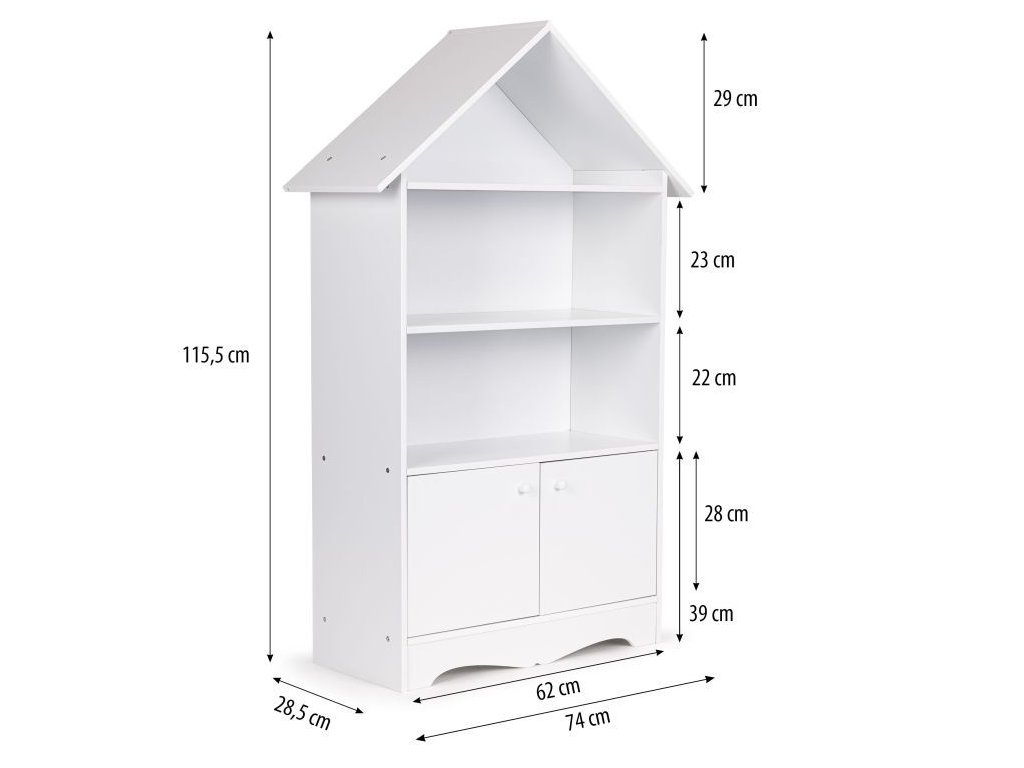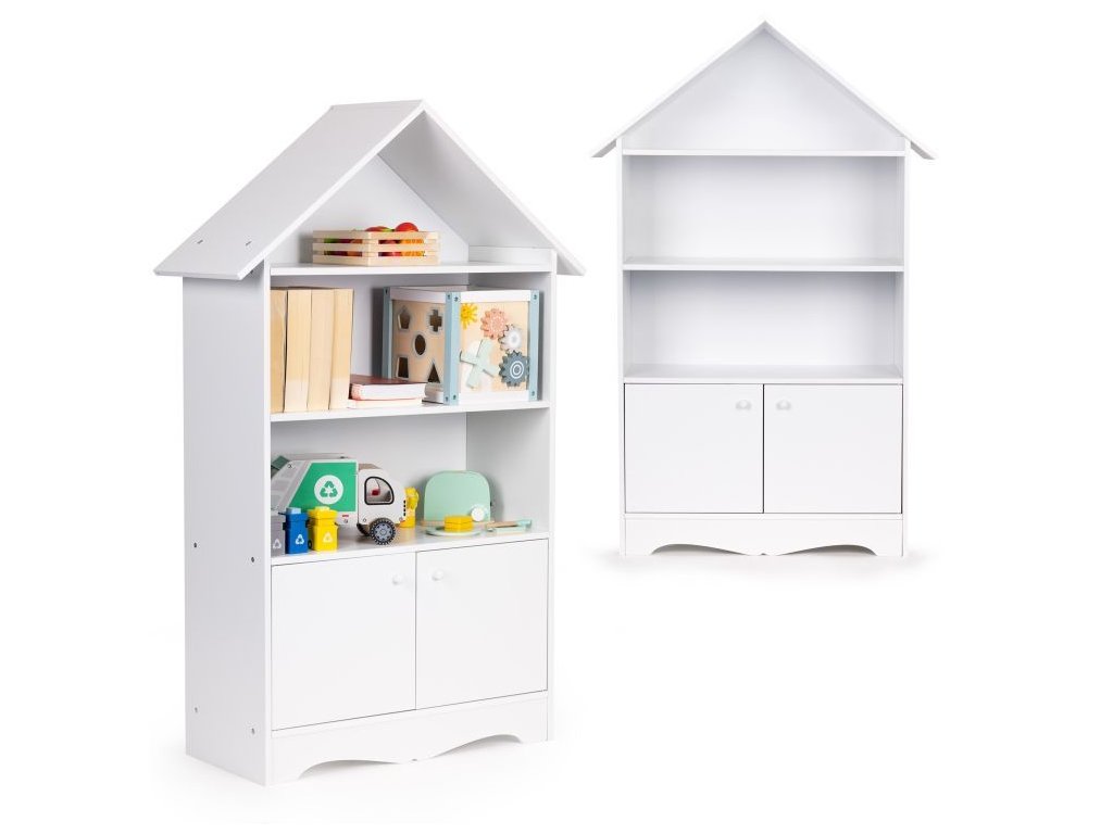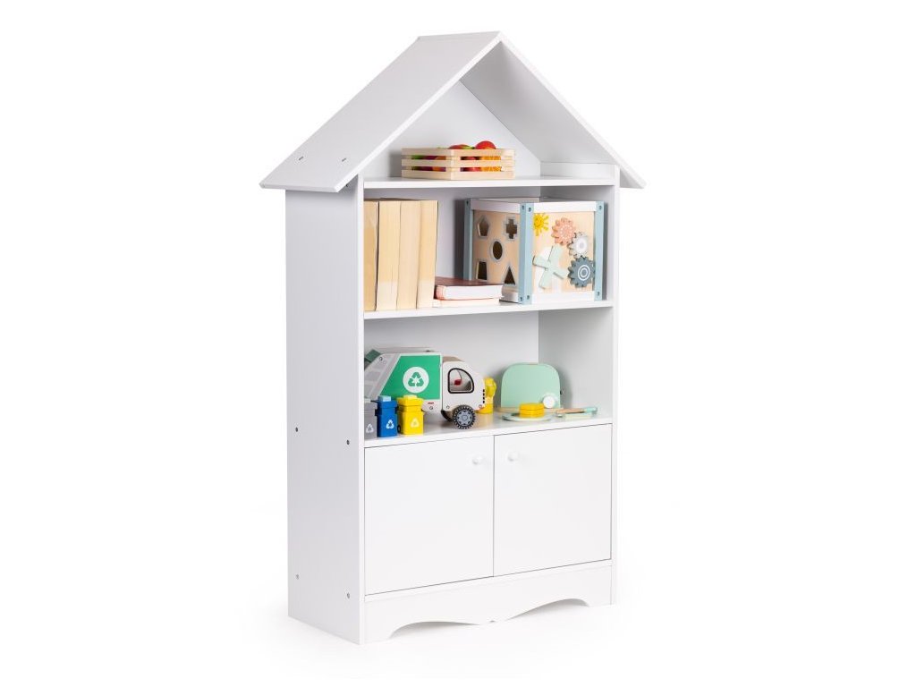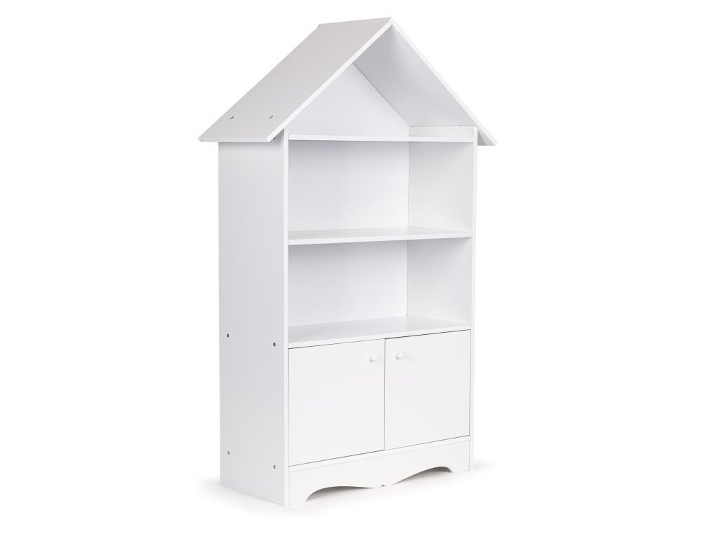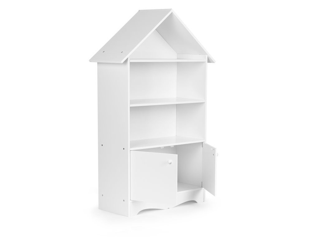Regál v tvare domčeka je kus nábytku, ktorý sa osvedčí v každej detskej izbe, vďaka nemu tam zavládne poriadok. Police a uzamykateľná skrinka pojmú obľúbené knihy, hračky a všetko, čo má vaše dieťa rado po ruke. Jeho biela farba umožňuje, aby regál dokonale zapadol do akéhokoľvek typu interiéru.