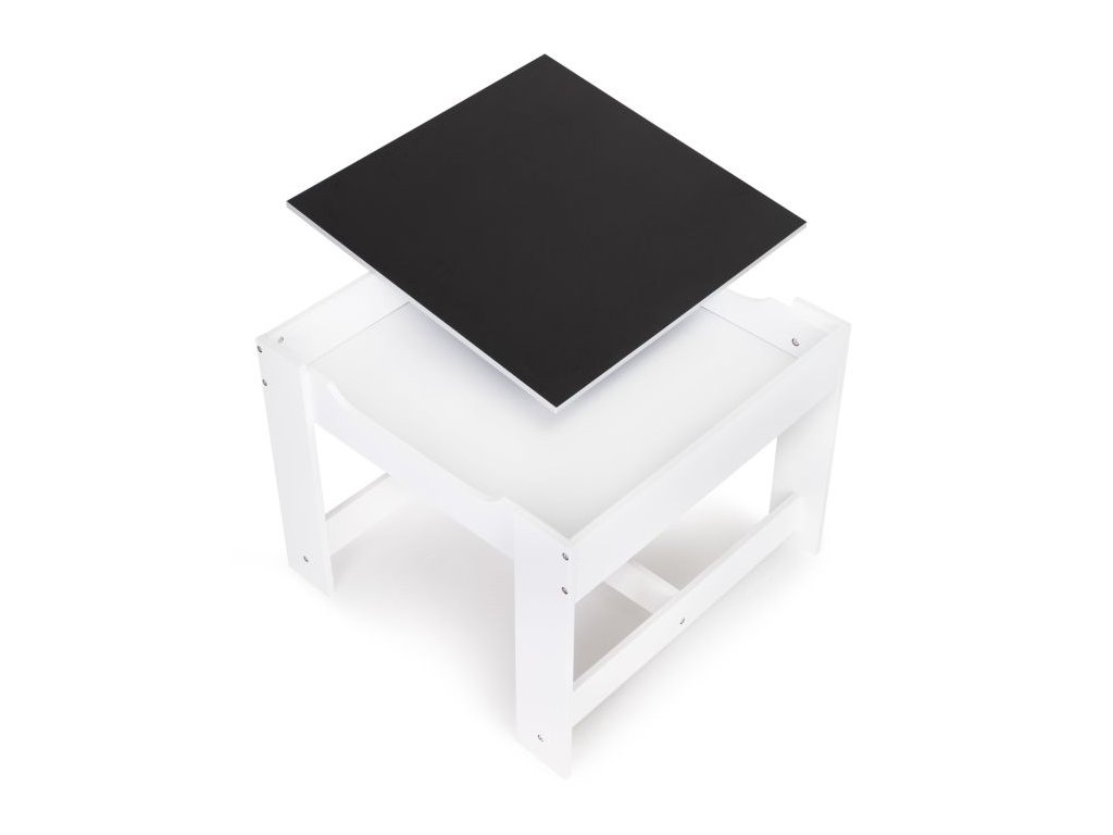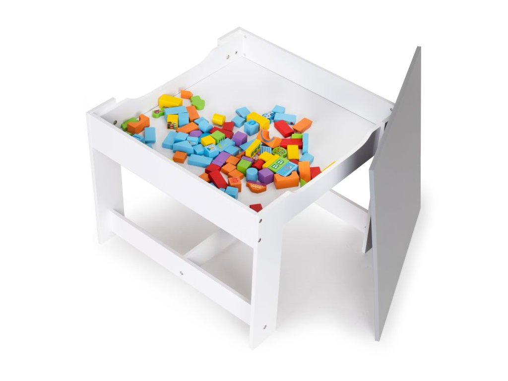 Stolík bude fungovať ako miesto, na ktorom budú vznikať výtvarné diela malých umelcov, verím z kociek a mnoho ďalších kreatívnych vecí. Po skončení zábavy je možné všetky doplnky schovať pod pracovnú dosku alebo do košov pod sedadlom, vďaka čomu budú vždy po ruke a pripravené na použitie.