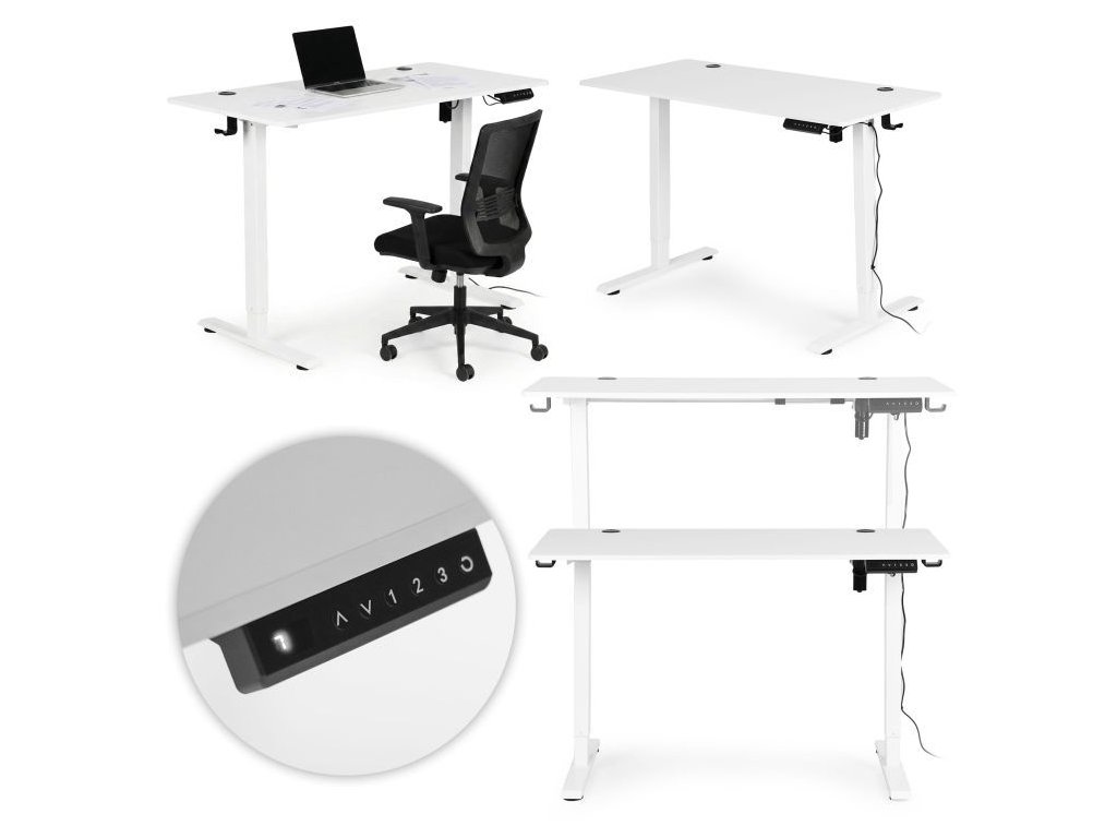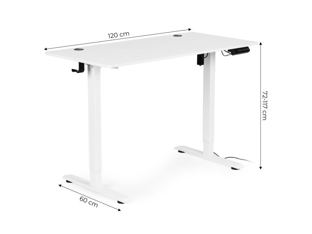 Elektrický nastaviteľný stôl 120 x 60 cm, nastaviteľná výška 72-117 cm, biely
