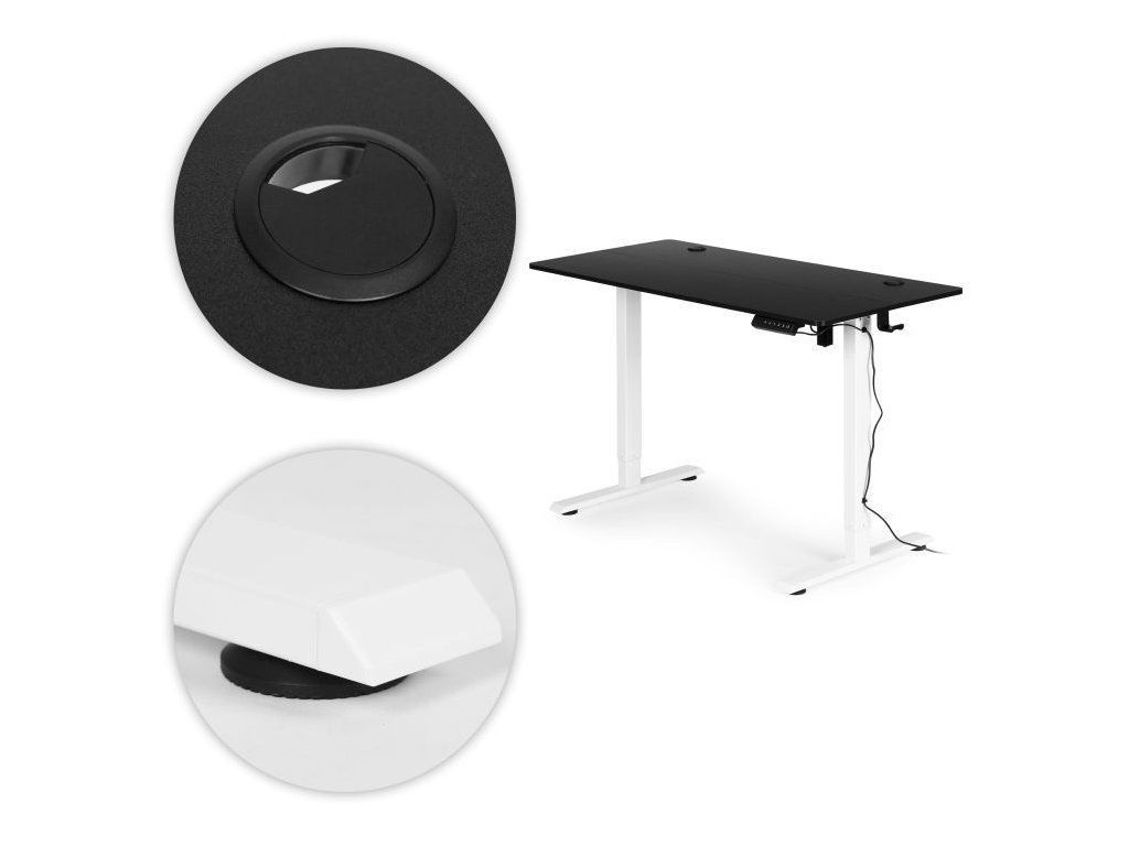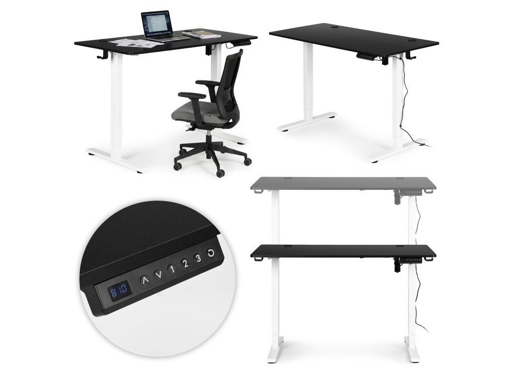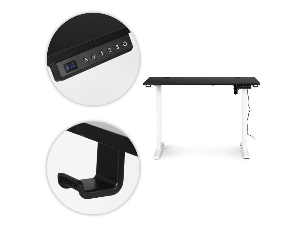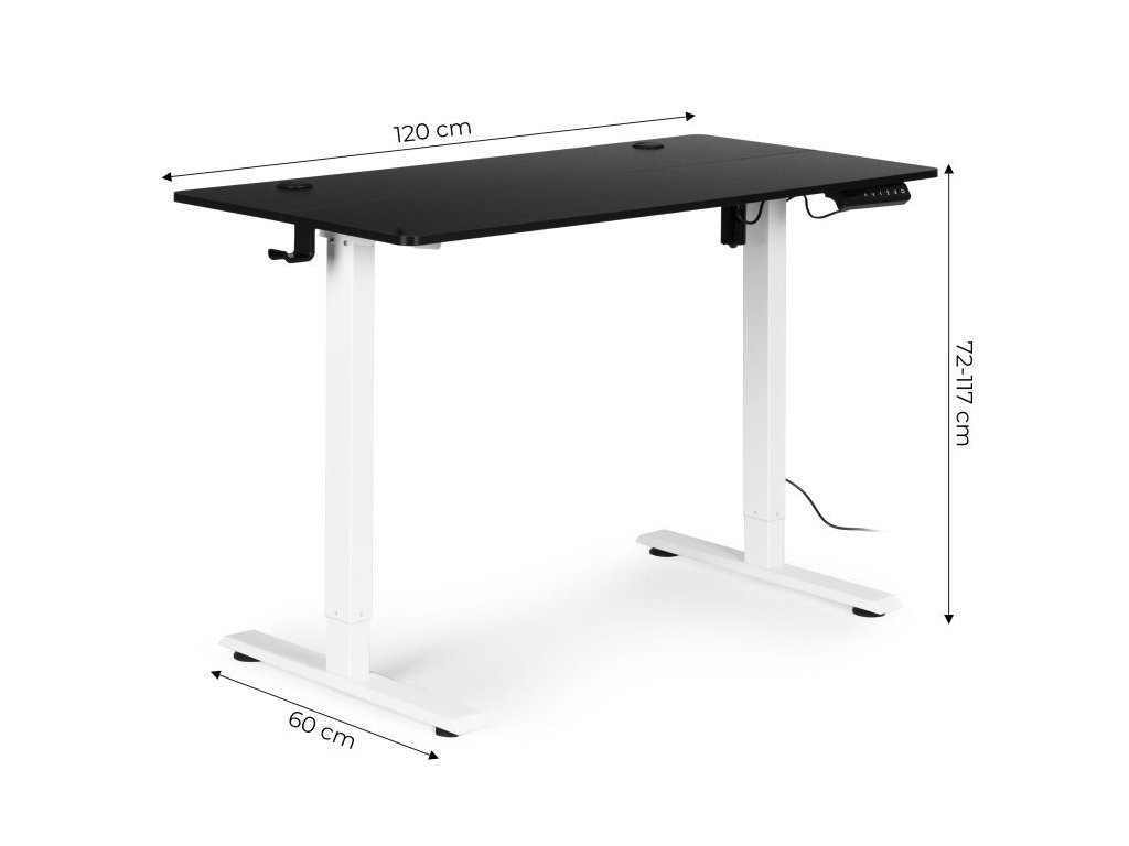 Elektrický nastaviteľný stôl 120 x 60 cm, nastaviteľná výška 72-117 cm, čierny s bielymi nohami