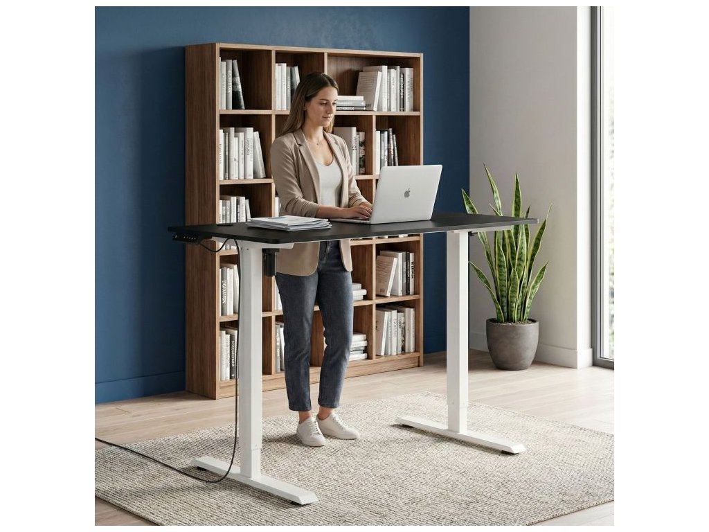 Elektrický stôl je ideálnym riešením pre ľudí, ktorí oceňujú pohodlie pri práci, starostlivosť o zdravie a moderný prístup k ergonómii. Skvele sa hodí ako doma, tak aj v kancelárii, ako aj pri práci s možnosťou nastavenia výšky, čo umožňuje plynulý prechod medzi polohou sedenia a státia. Takáto variabilita polohy pomáha znižovať svalové napätie, podporuje krvný obeh a podporuje lepšiu koncentráciu. Je to vynikajúci výber pre každého, kto trávi veľa hodín pri počítači – vzdialených pracovníkov, programátorov, grafikov, hráčov a všetkých, ktorí sa chcú postarať o svoje zdravie bez kompromisov v oblasti pohodlia alebo funkčnosti.