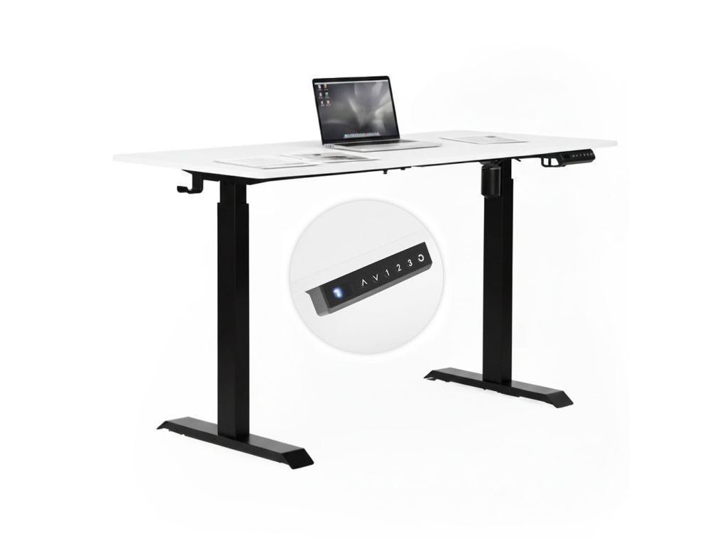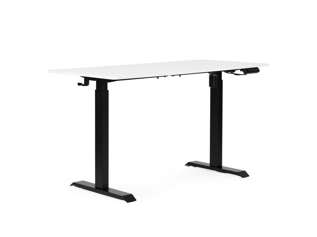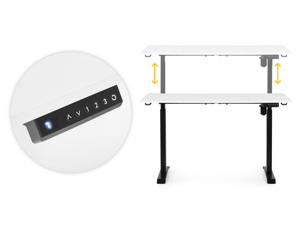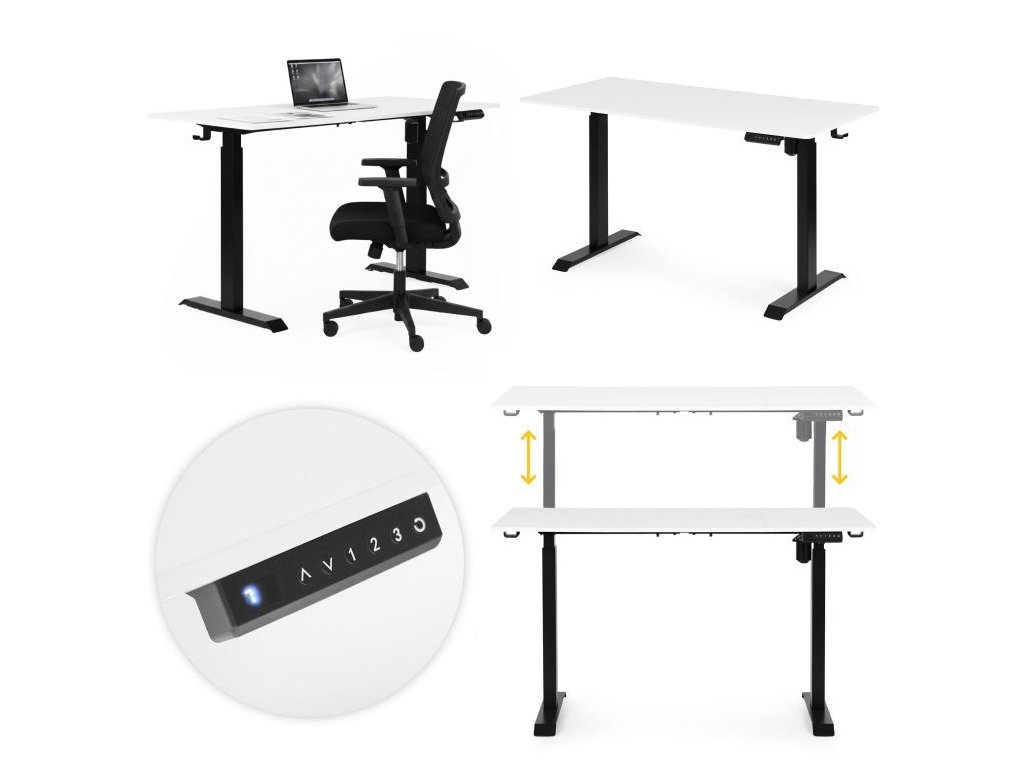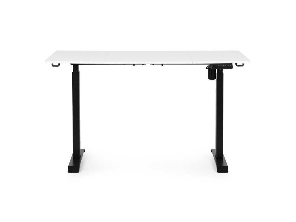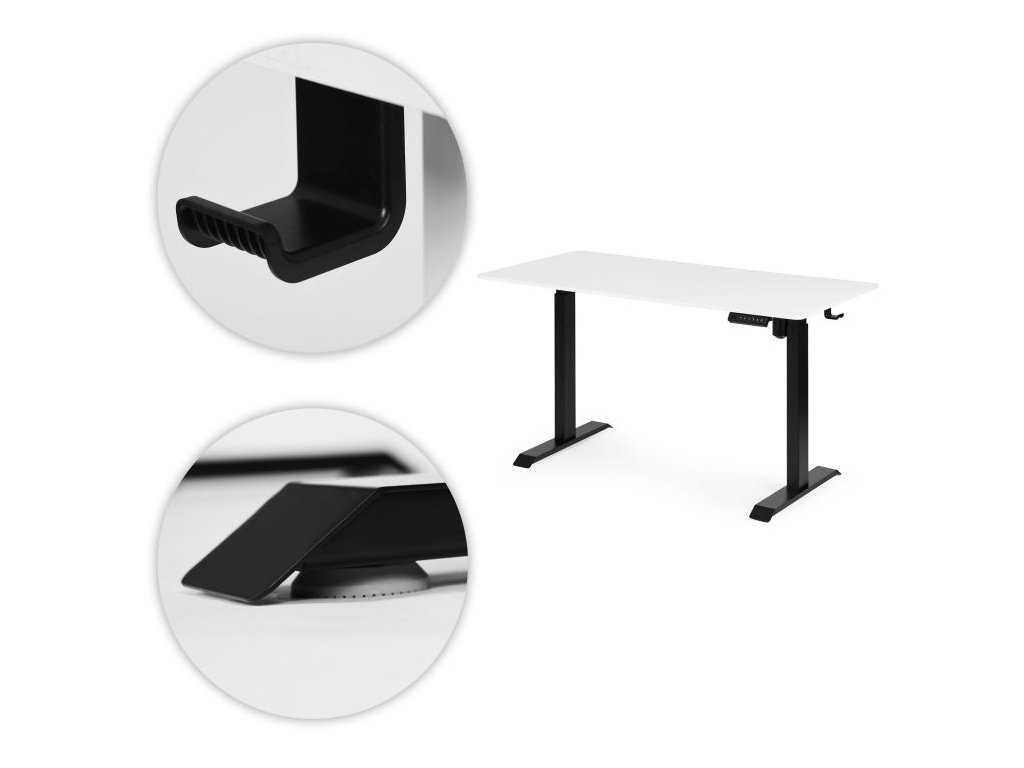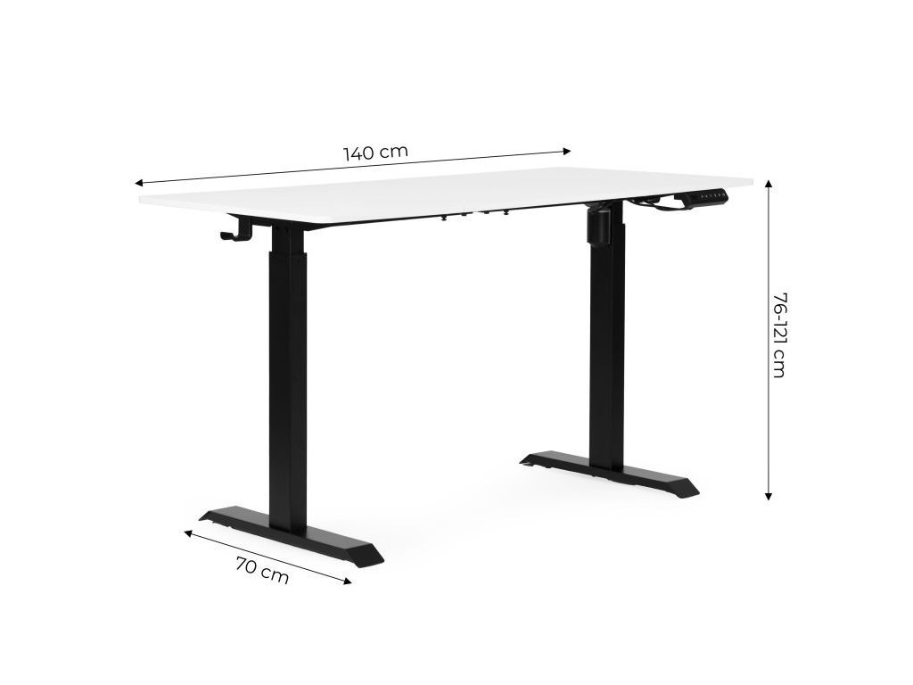 Elektrický nastaviteľný stôl 140 x 70 cm, nastaviteľná výška 76-121cm, biely s čiernymi nohami