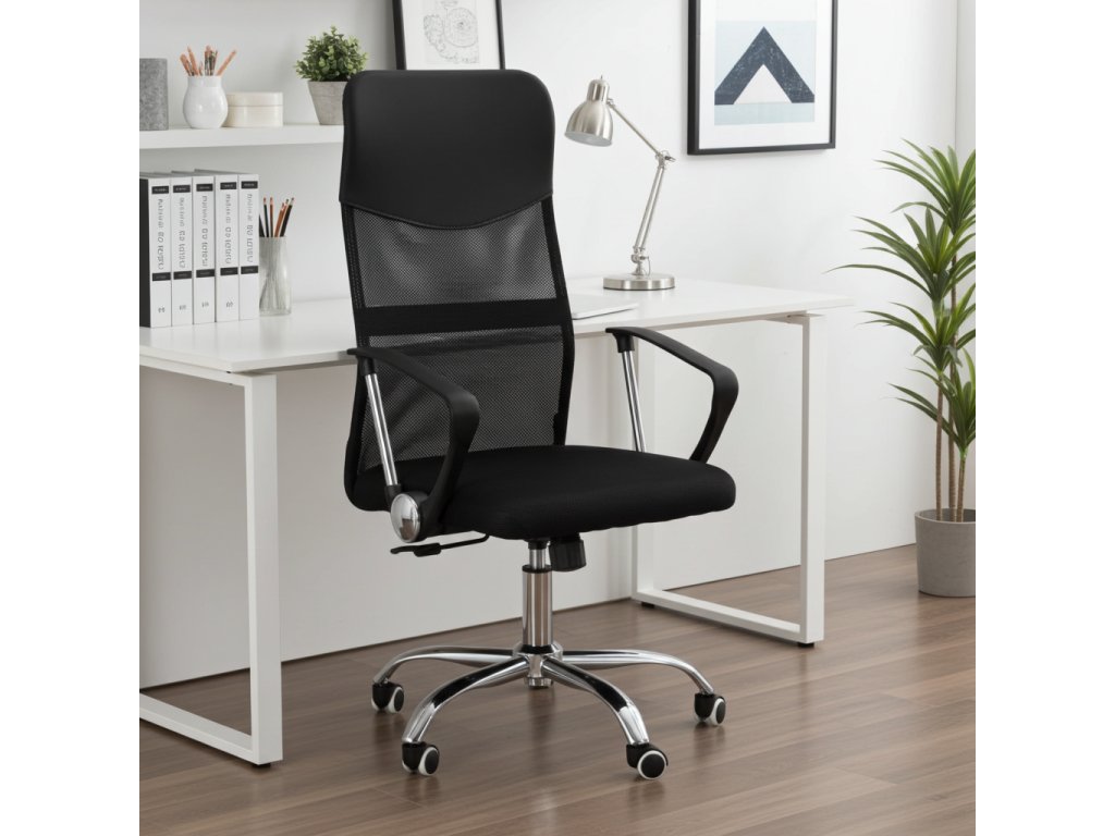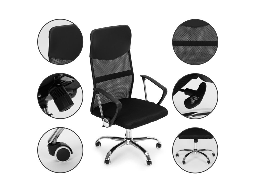 Skladá sa z membránovej tkaniny a sieťoviny, ktorá je na operadle a je v čiernej farbe. Neutrálna farba stoličky je vhodná do akéhokoľvek štýlu. Stojí na piatich kolieskach, vďaka ktorým je možné presunúť stoličku na potrebné miesto bez väčšej námahy. Jednoduchý kus nábytku za priaznivú cenu, ktorý zapadne aj do vašej pracovne.