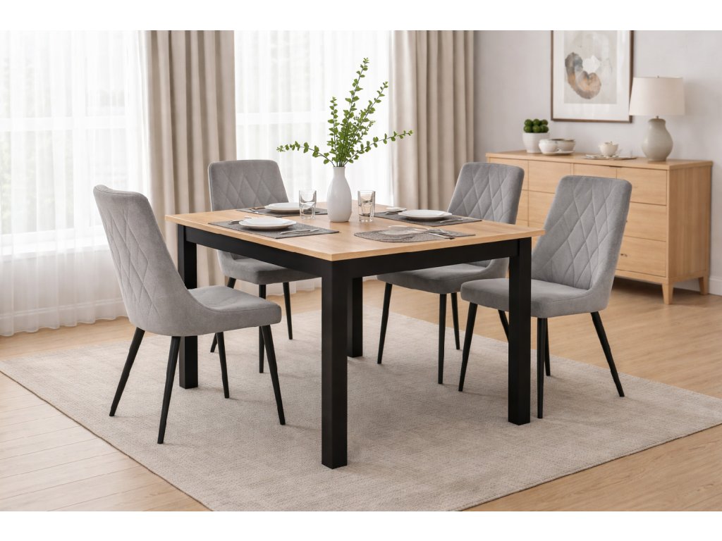 Čierne nohy v kombinácii s doskou v dekore dub zlatý craft vytvárajú štýlový a moderný kontrast, ktorý sa hodí do širokej škály interiérov. Tento dizajn je ideálny pre industriálne alebo moderné priestory, kde čierna farba dodá stolu výrazný charakter. Dubový dekor prináša do miestnosti teplý a prírodný prvok, ktorý skvele doplní atmosféru vášho domova.