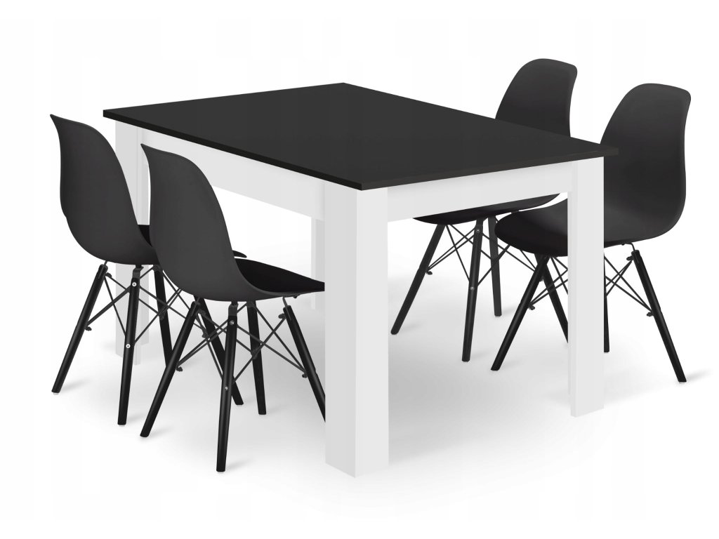 Jedálenská zostava stôl 120 x 80cm čierny s bielymi nohami + 4 stoličky OSAKA čierne/ prírodné nohy