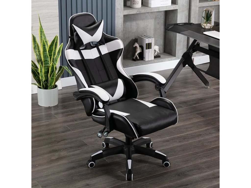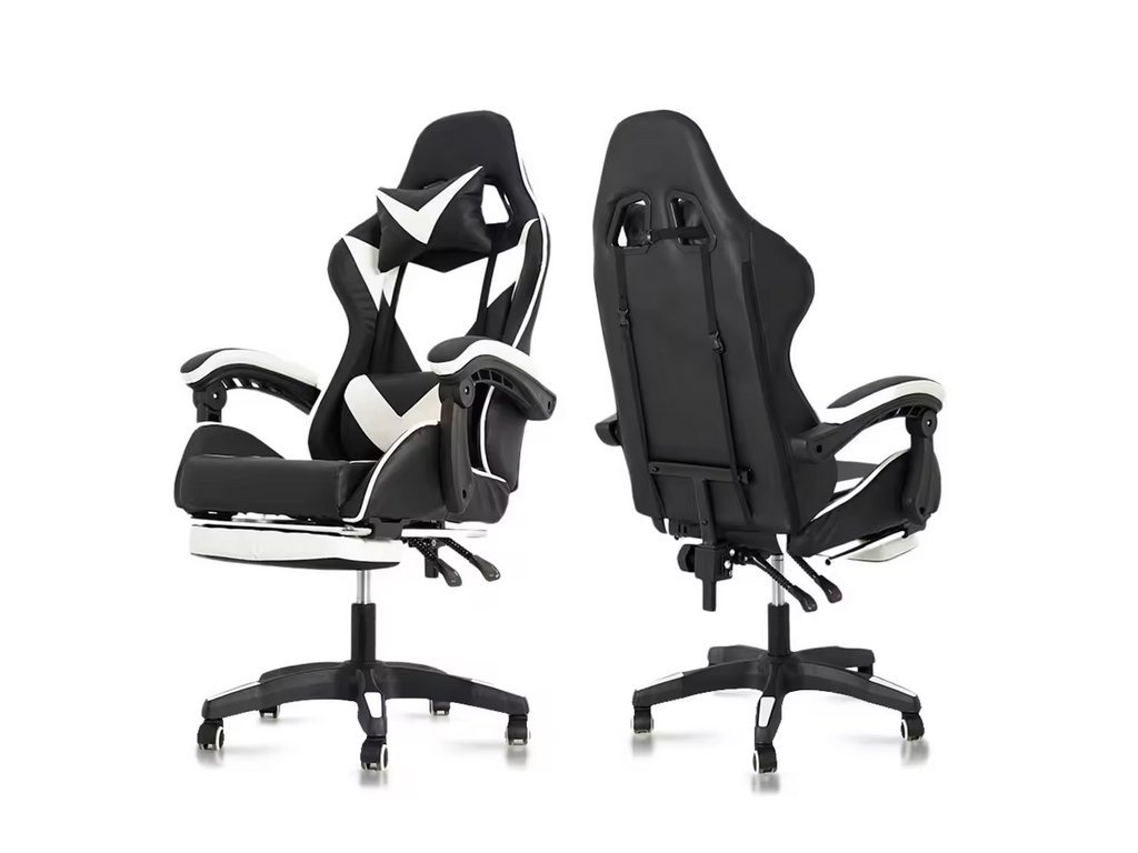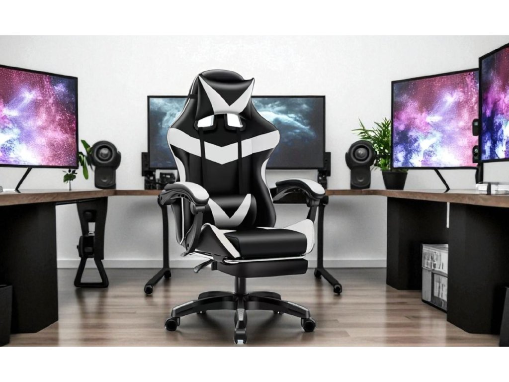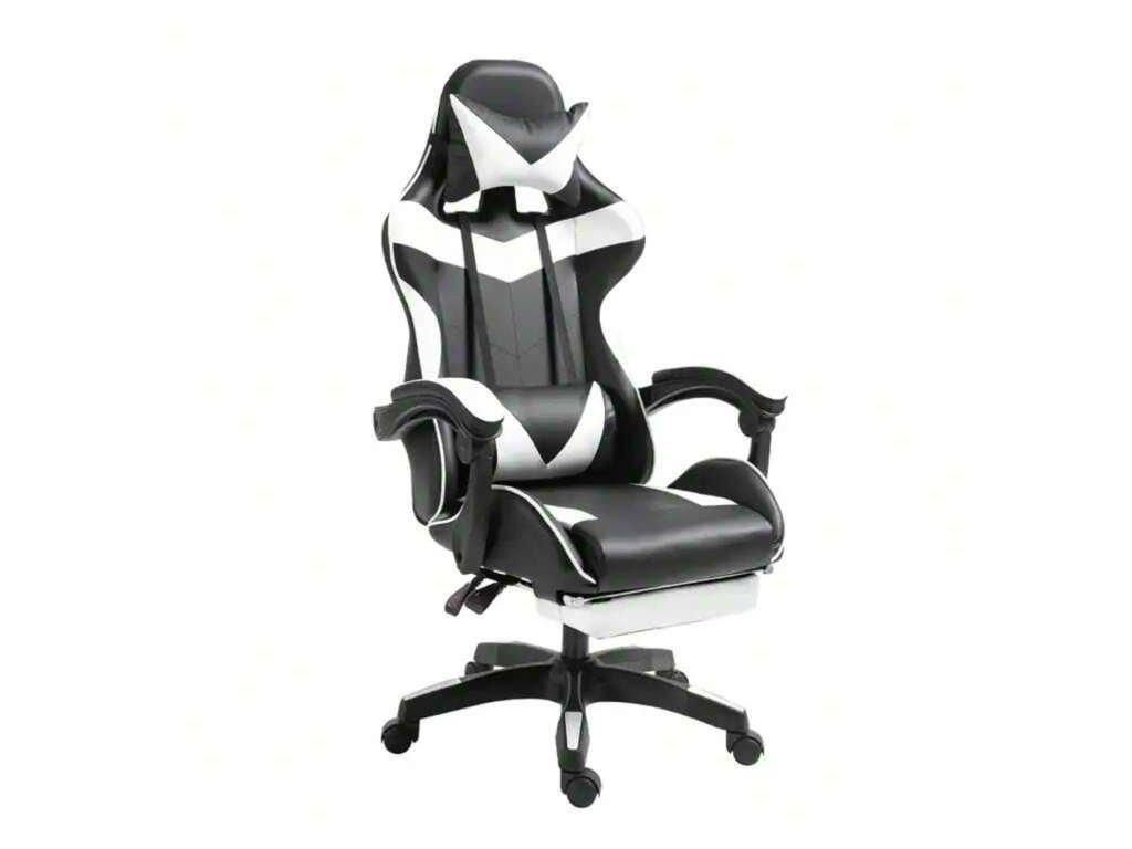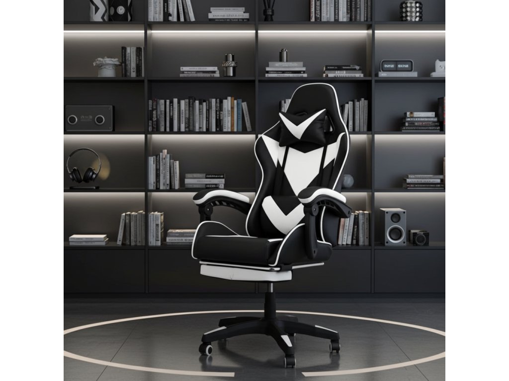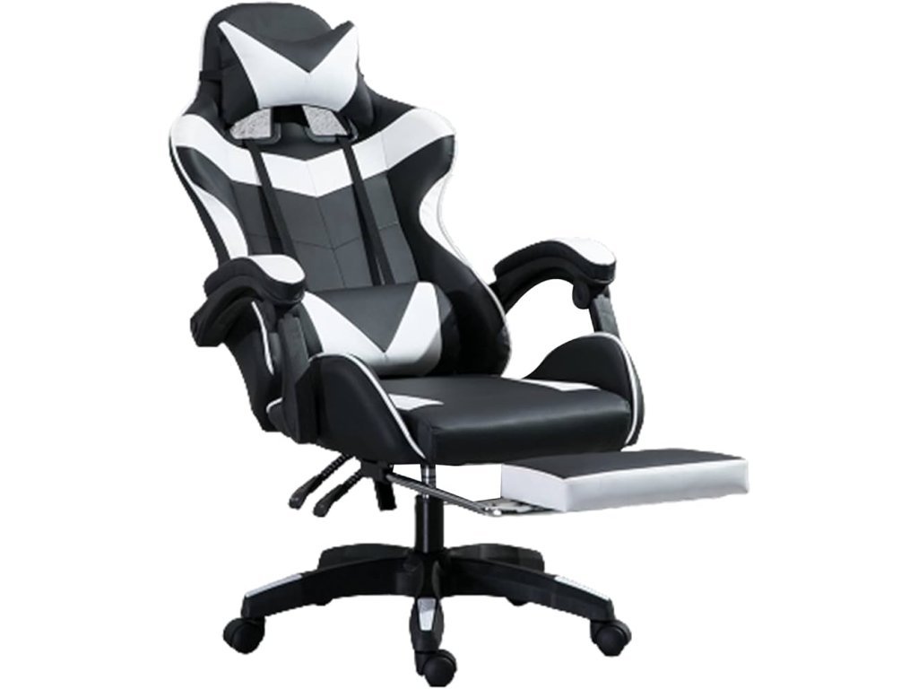 Kancelárska herná stolička s nastaviteľnou opierkou nôh - čierno - biela
