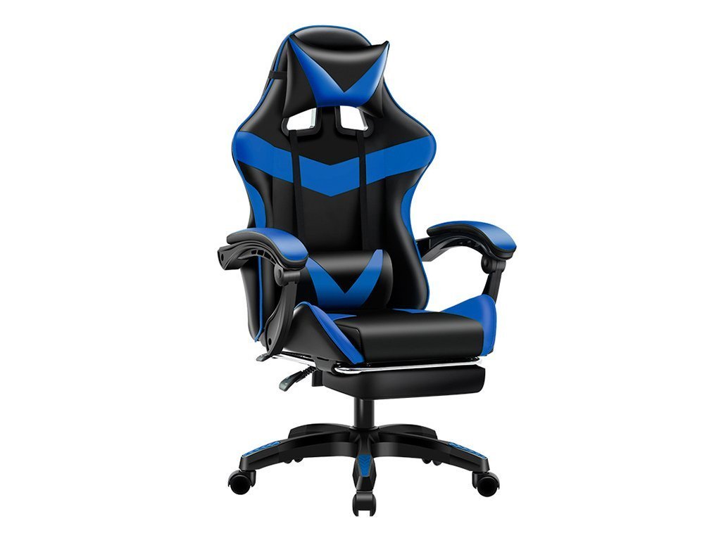 Kancelárska herná stolička s nastaviteľnou opierkou nôh - čierno - modrá 1 + 1