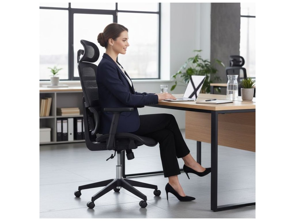 Ergonomická konštrukcia s priedušným sieťovým operadlom a nastaviteľnou opierkou hlavy a podrúčkami zabezpečuje úplné prispôsobenie sa postave a každodenným potrebám používateľa. Vďaka minimalistickej, modernej forme sa skvele hodí do každého interiéru a komfort používania robí aj niekoľkohodinovú prácu pri stole menej zaťažujúcou. Je to vynikajúci výber pre tých, ktorí hľadajú rovnováhu medzi estetikou, zdravím a pohodlím na pracovisku.