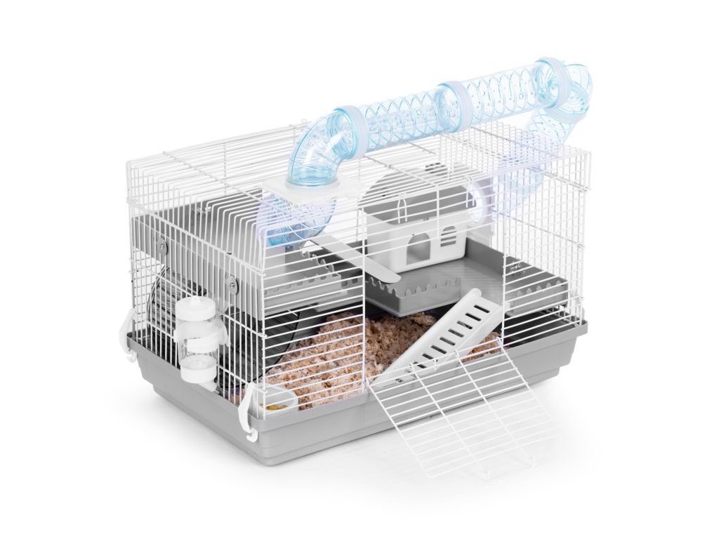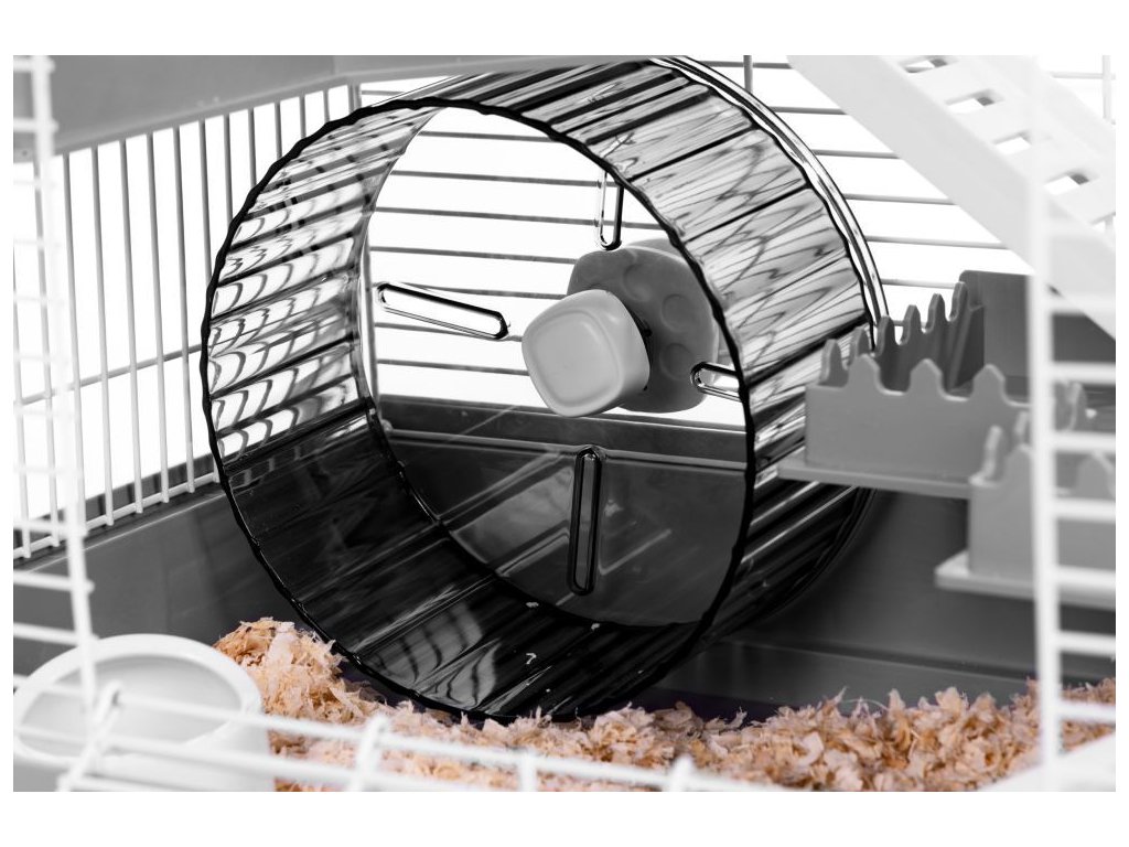 - Štyri poschodia umožňujú tráviť čas na rôznych miestach a schovávať sa v zákutiach klietky. Každé poschodie má svoj samostatný vchod, vďaka čomu sa hlodavec bez problémov dostane na každú úroveň.