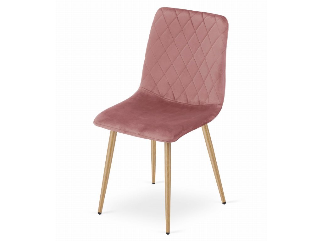 Kreslo TURIN - ružový zamat / nohy vo farbe dreva