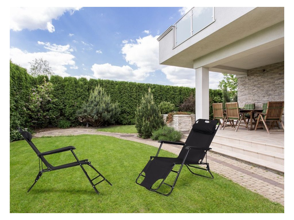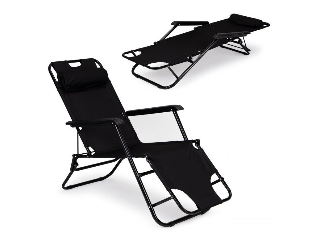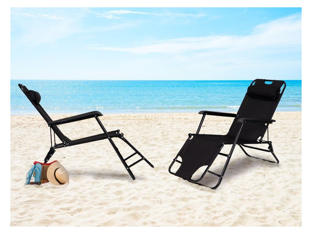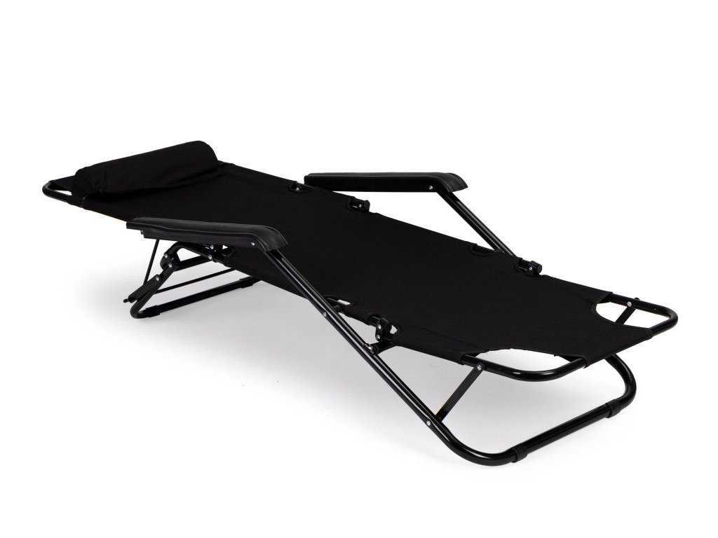 Ležadlo s opierkou hlavy, skladacia konštrukcia, čierne