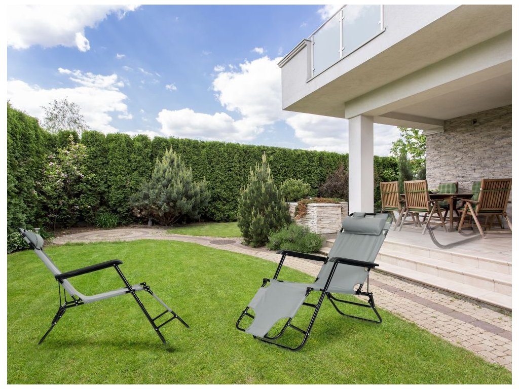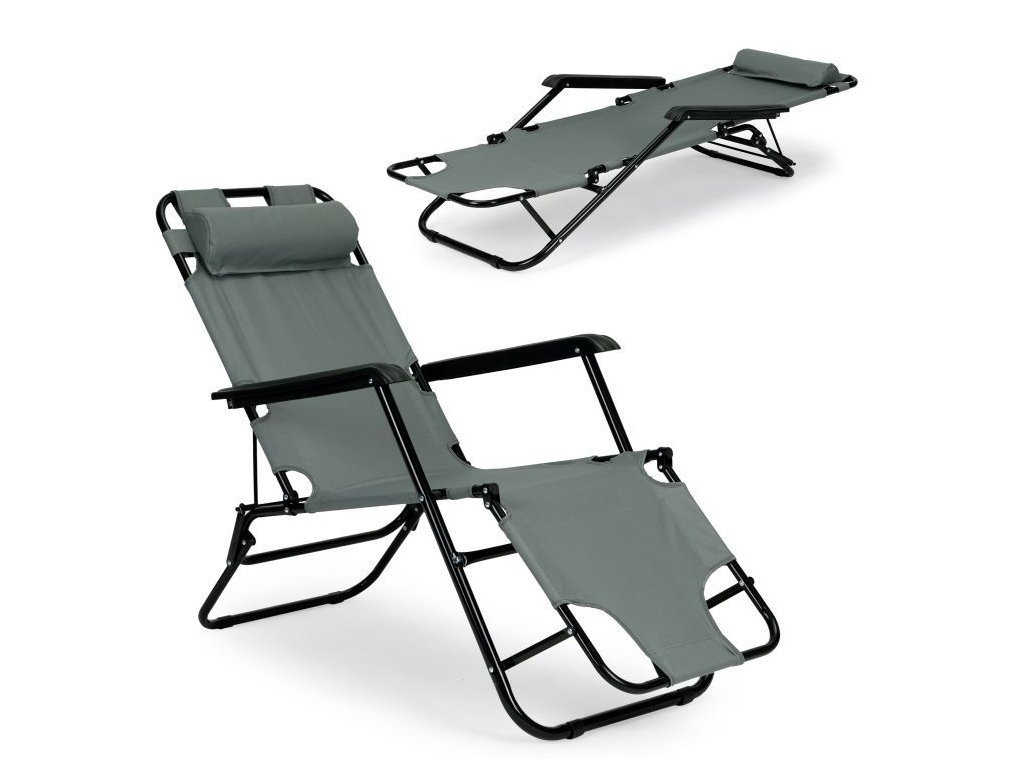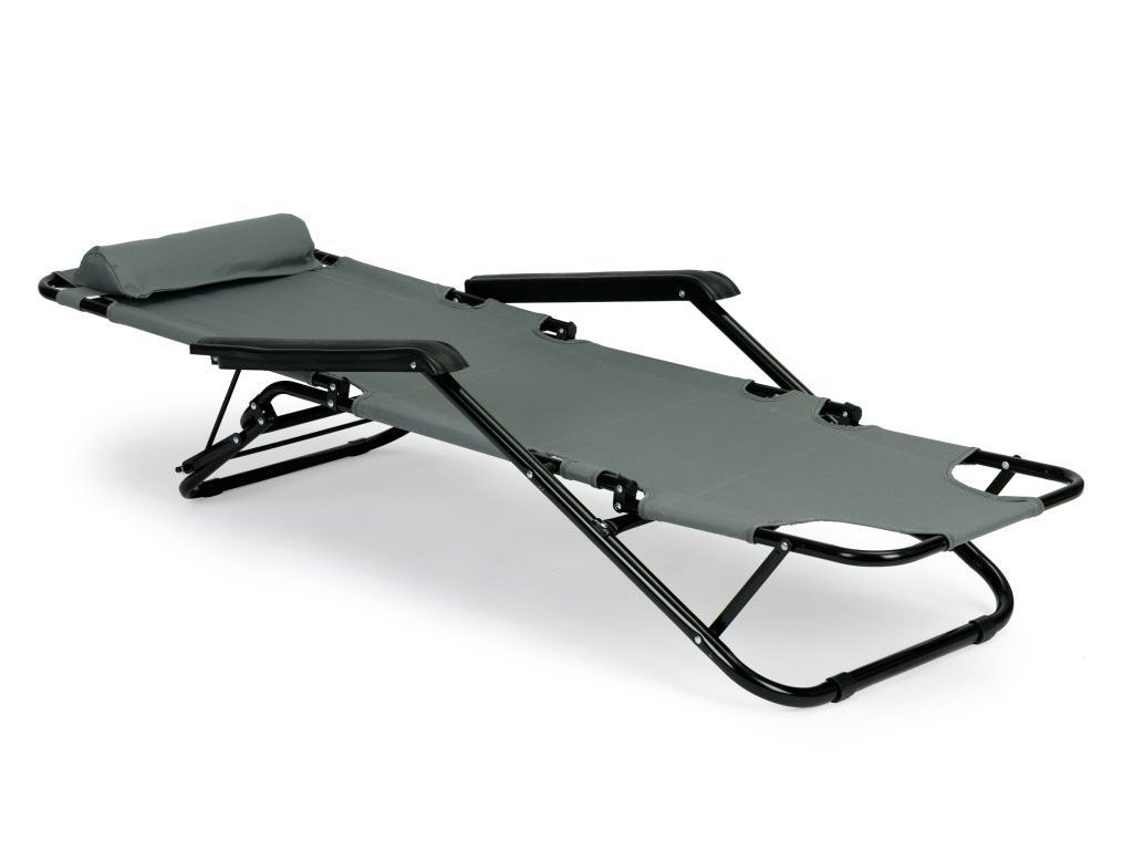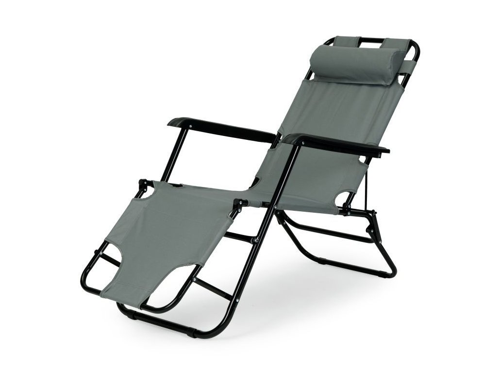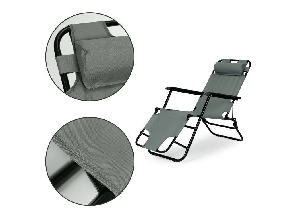 Ležadlo s opierkou hlavy, skladacia konštrukcia, sivé