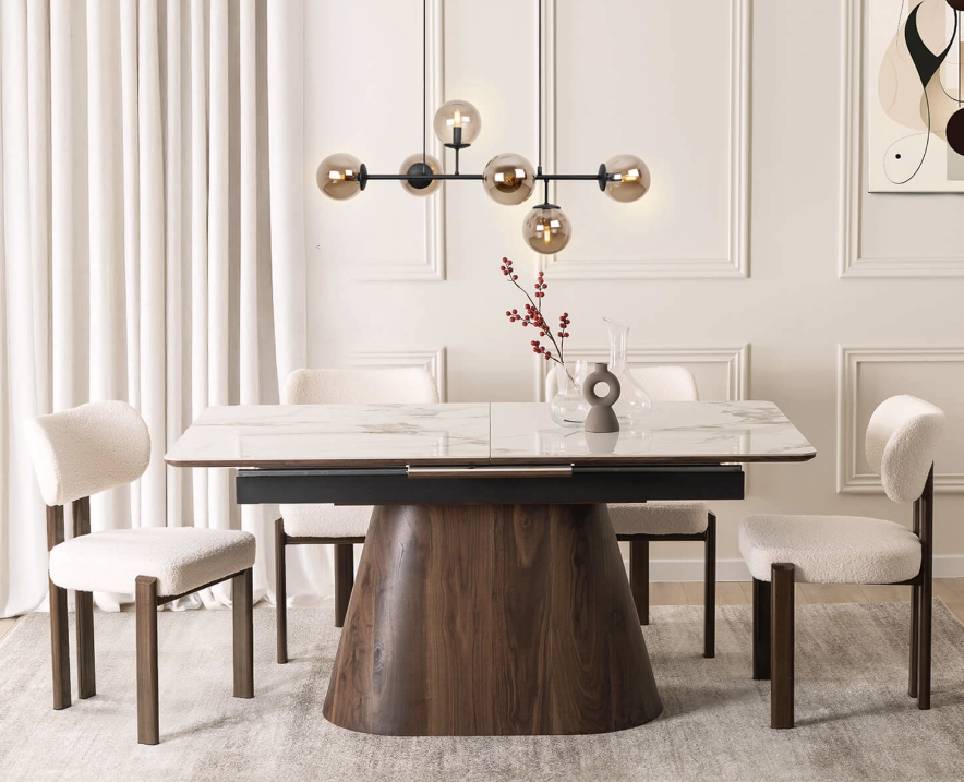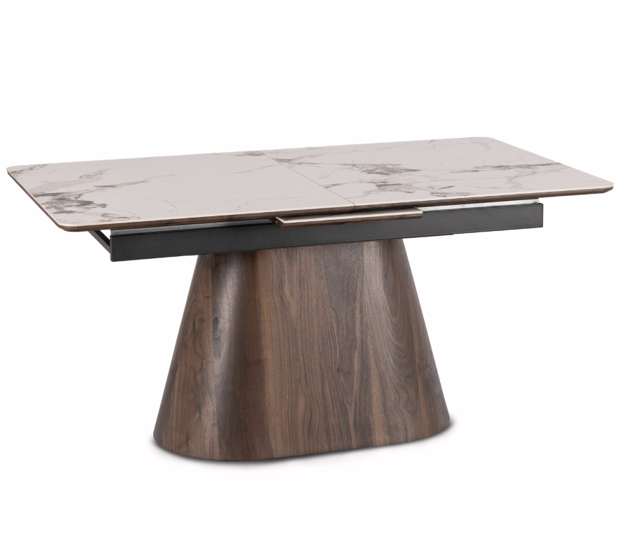 LIZBONA Keramický rozkladací stôl 160-200 cm biely mramor/orech