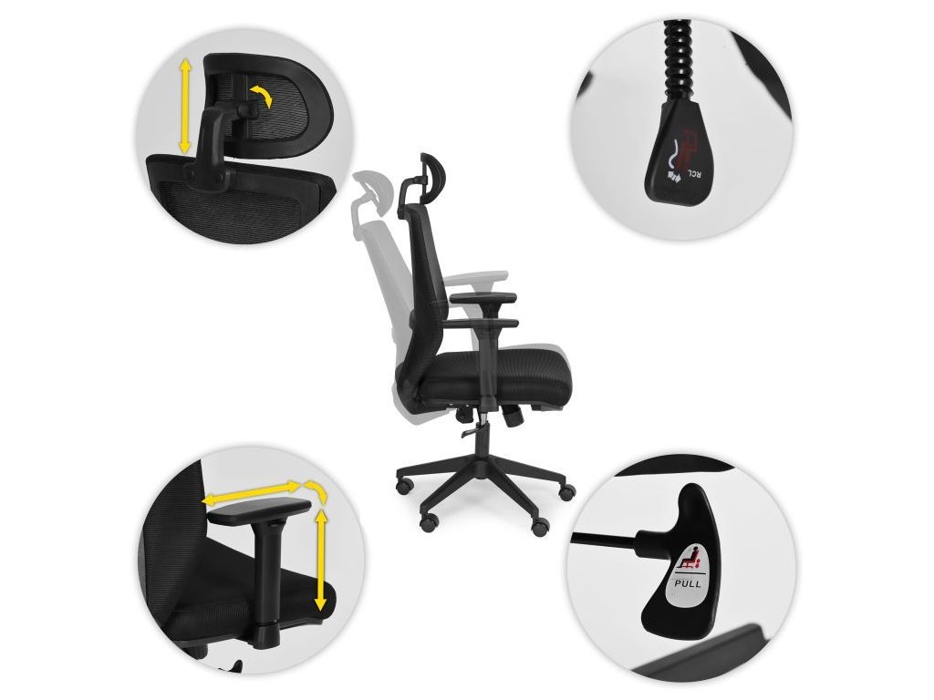 Jeho ergonomická konštrukcia s priedušným sieťovým operadlom a nastaviteľnou opierkou hlavy a podrúčkami zabezpečuje úplné prispôsobenie sa postave a každodenným potrebám používateľa. Vďaka minimalistickej, modernej forme sa skvele hodí do každého interiéru a komfort používania robí aj niekoľkohodinovú prácu pri stole menej zaťažujúcou. Je to vynikajúci výber pre tých, ktorí hľadajú rovnováhu medzi estetikou, zdravím a pohodlím na pracovisku.