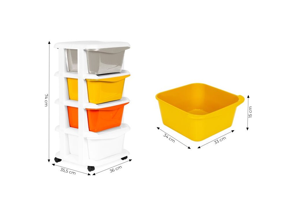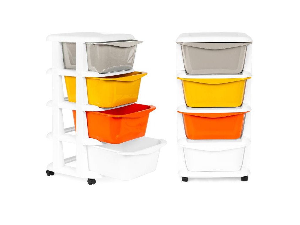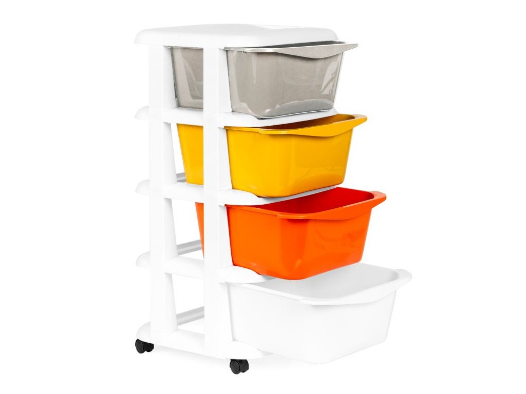 Pojazdný regál so 4 zásuvkami na kolieskach, plastový
