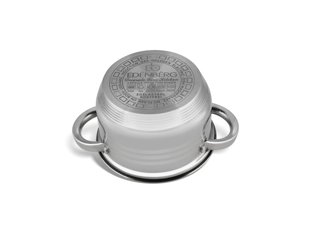 Nehrdzavejúca oceľ je nepriľnavý materiál. Jedlo sa tak vôbec nepripáli, či už ide o mäso, maslo, alebo napríklad o omáčky. Tento krásny dizajn dopĺňajú elegantné krivky hrncov.