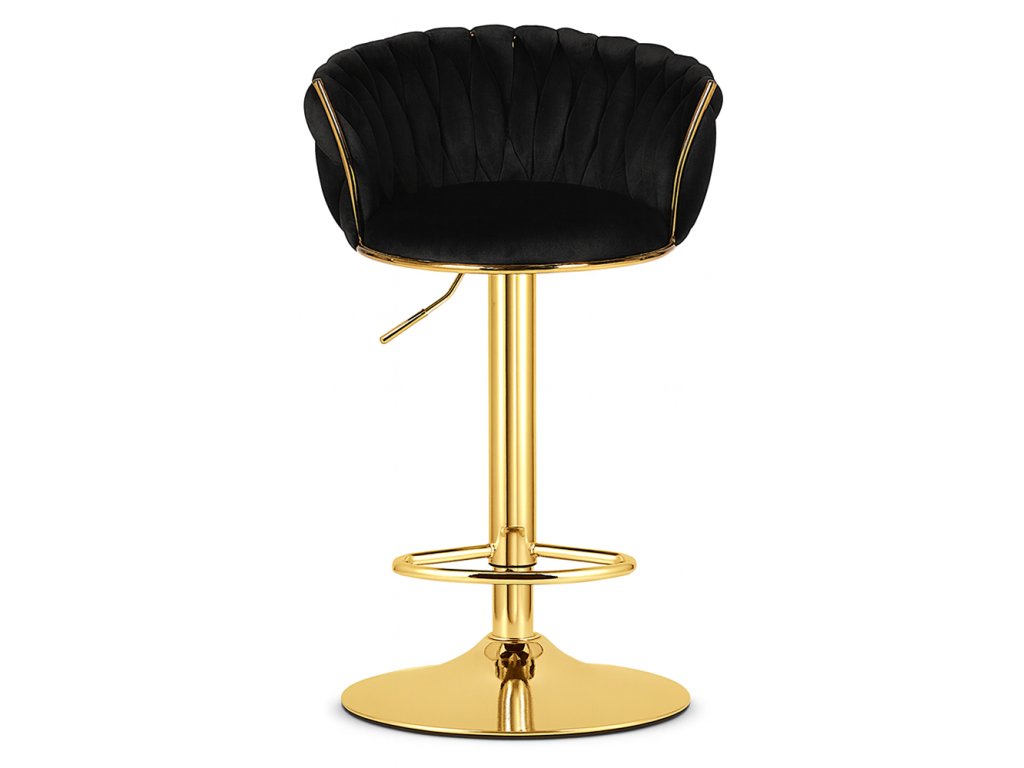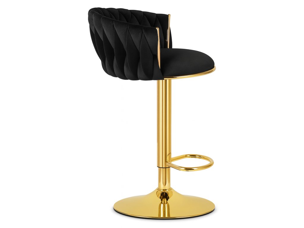 Táto luxusná barová stolička je dokonalým spojením modernej elegancie a premyslených detailov. Bohaté čierne velúrové čalúnenie v kombinácii s výraznou zlatou kovovou konštrukciou vytvára skutočne exkluzívny vzhľad, ktorý sa stane dominantným prvkom každého interiéru. Či už hľadáte stoličku ku kuchynskému pultu alebo do štýlového baru, tento model je ideálnou voľbou, ak je pre vás dôležitý dizajn aj komfort.