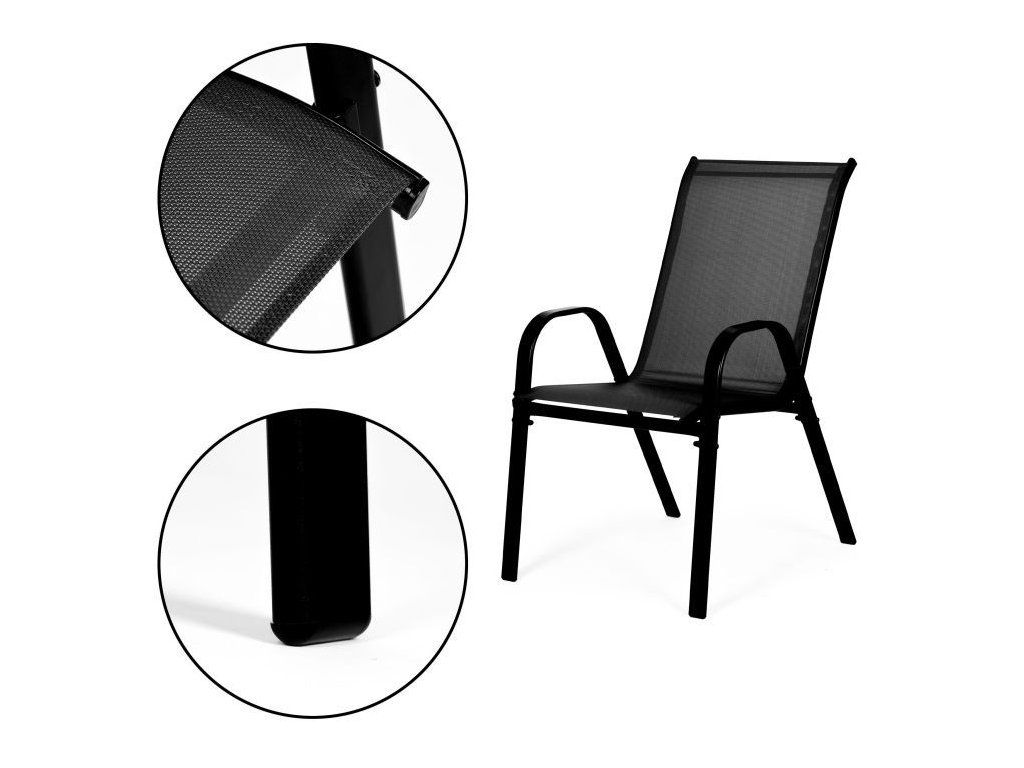 Štýlová a elegantná sada záhradného nábytku v čiernej farbe. Vyrobená z vysoko kvalitnej pozinkovanej a práškovo lakovanej ocele, zaručuje trvanlivosť a odolnosť voči poveternostným podmienkam. Ideálny výber na balkón, terasu alebo do záhrady.
