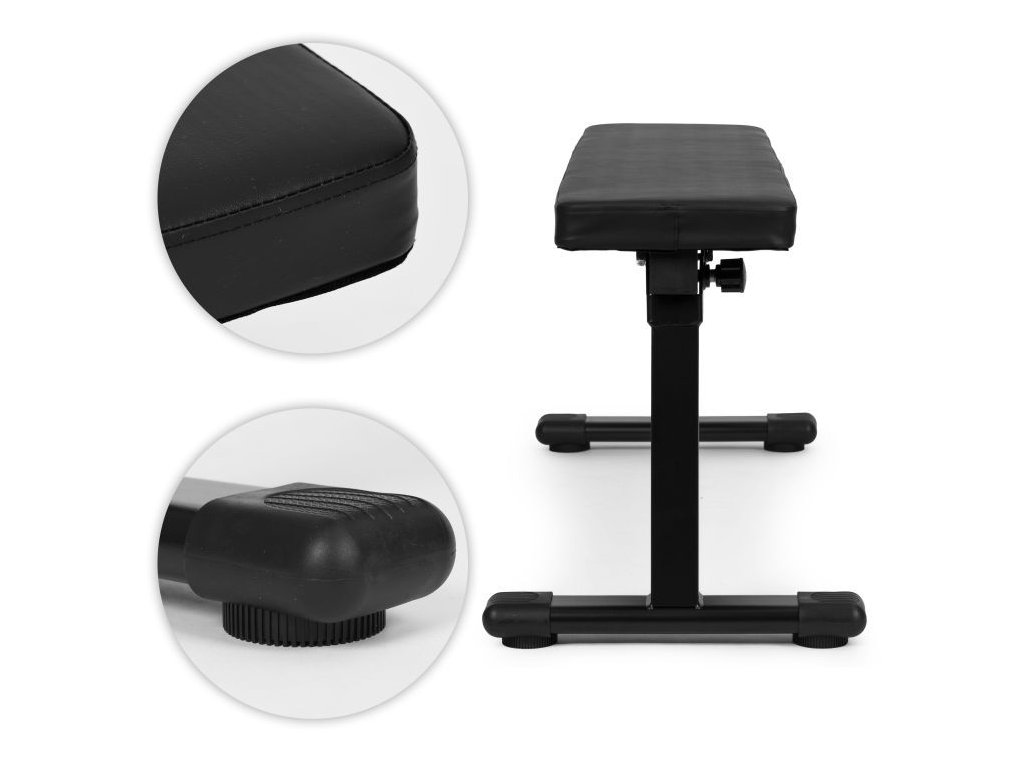 - Protišmykové pätky s gumovou povrchovou úpravou zabezpečujú stabilitu a bezpečnosť počas cvičenia, dokonca aj na klzkých povrchoch. Okrem toho chránia podlahu pred poškriabaním, čo zvyšuje komfort používania lavičky v domácich podmienkach.