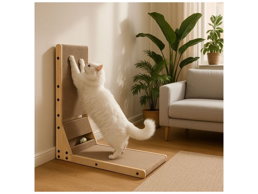 Konštrukcia je vyrobená z vrstveného kartónu, ktorý mačky milujú. Vďaka svojej hrubšej štruktúre im poskytuje ideálny povrch na brúsenie pazúrikov, a zároveň je šetrný k ich labkám. Pevný MDF rám celú konštrukciu spevňuje a zaisťuje, že škrabadlo vydrží aj energickejšie výpady lovcov. Pre vás to znamená nielen spokojnú mačku, ale aj ochranu nábytku a podláh pred jej prirodzeným správaním.