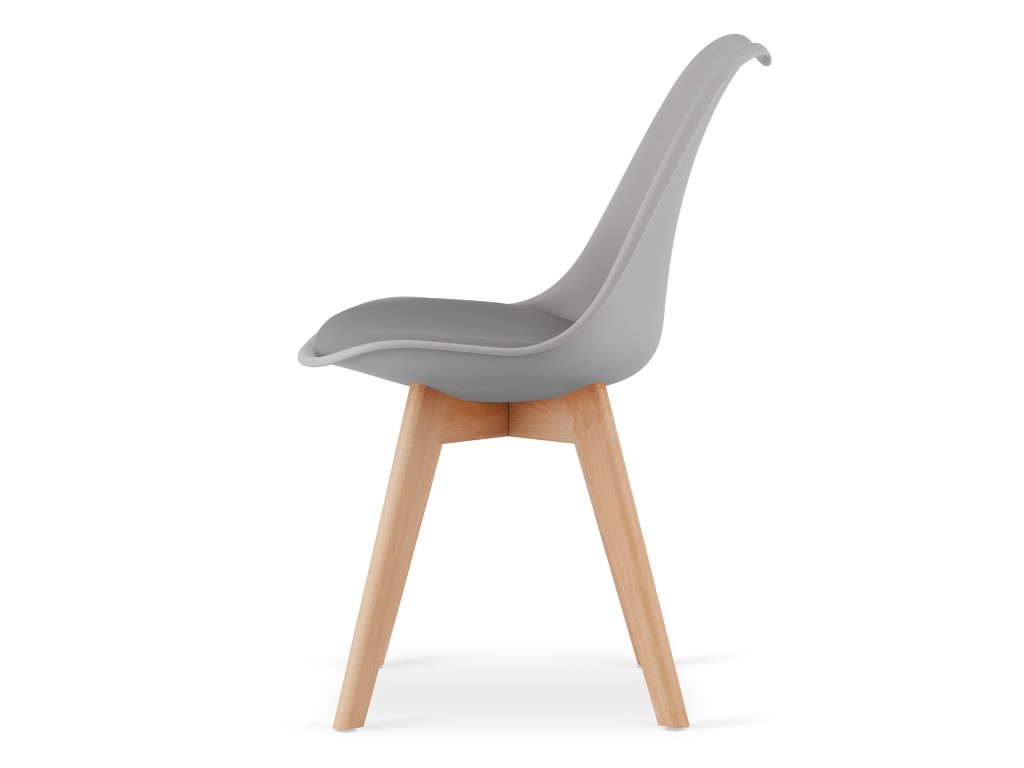 Jedálenská stolička má plastový korpus v sivej farbe a pohodlný čalúnený sedák potiahnutý koženkou