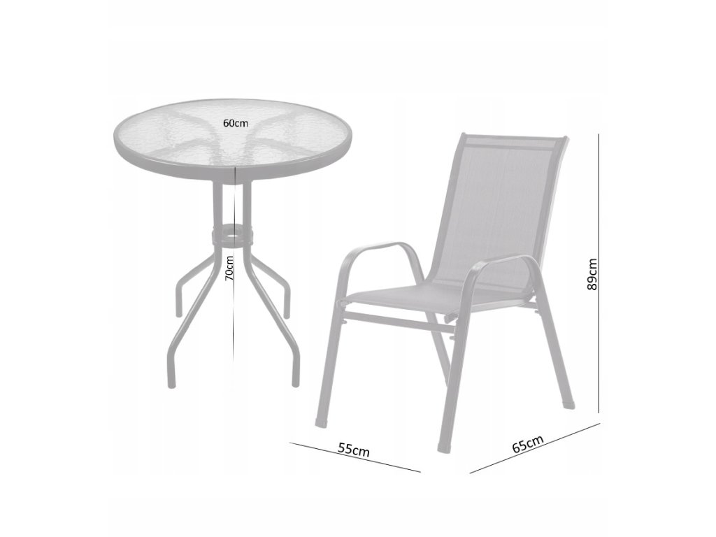 Štýlová a elegantná sada záhradného nábytku v čiernej farbe. Vyrobená z vysoko kvalitnej pozinkovanej a práškovo lakovanej ocele, zaručuje trvanlivosť a odolnosť voči poveternostným podmienkam. Ideálny výber na balkón, terasu alebo do záhrady.