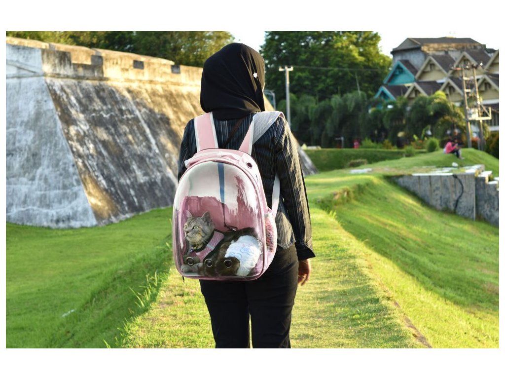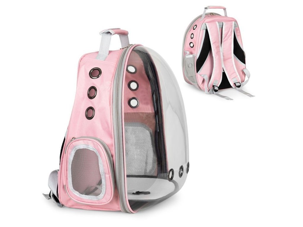 Transportný batoh so sklom pre mačku alebo psa - ružový