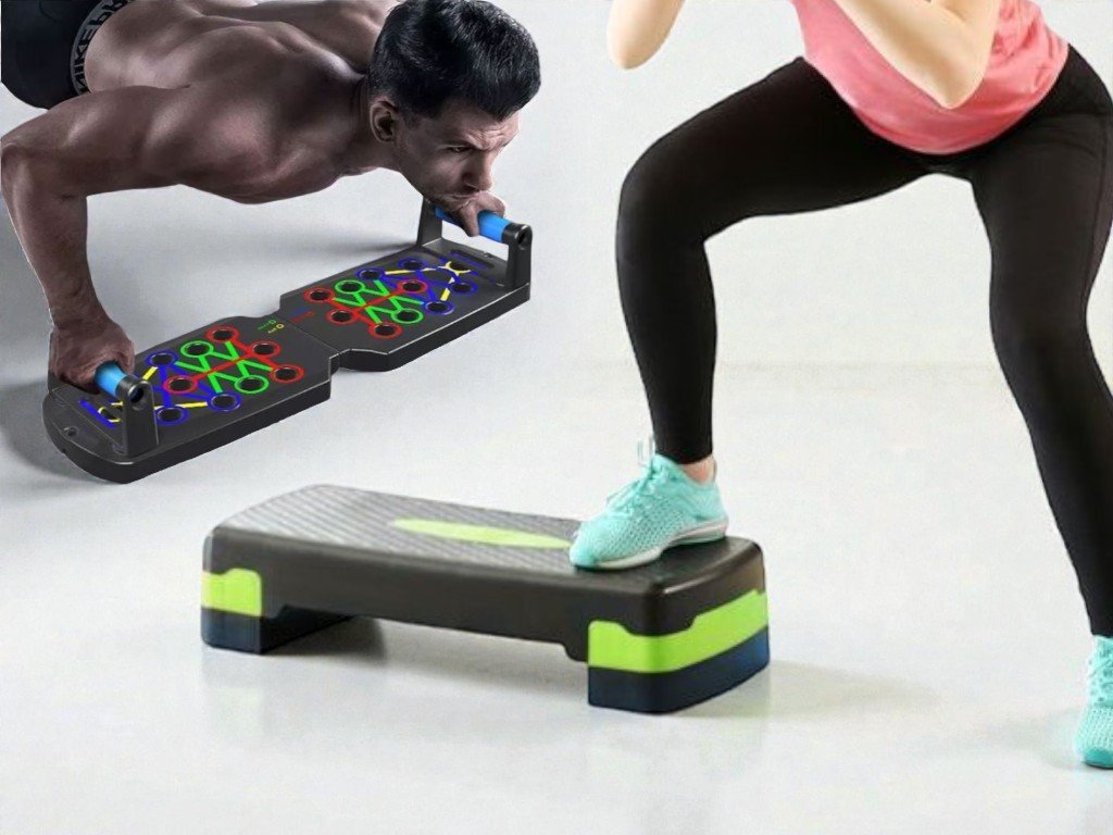 Tréningový fitness set - doska na cvičenie s rukoväťami na kliky + fitness stepper
