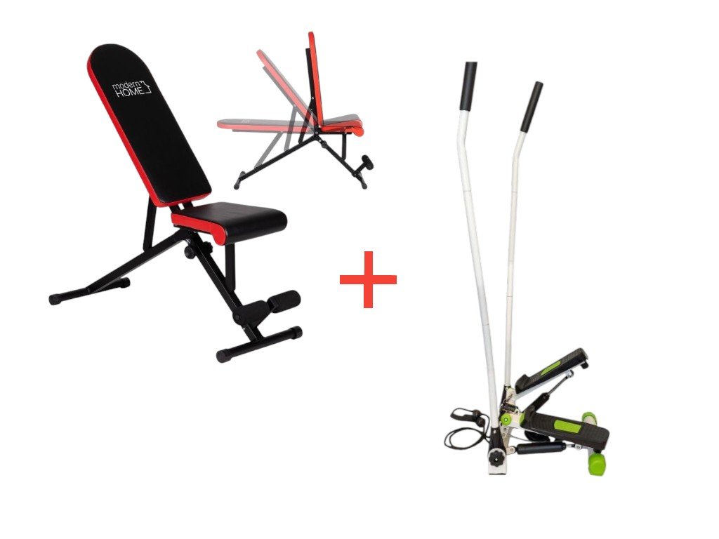 Tréningový fitness set - posilňovacia lavička + otočný stepper