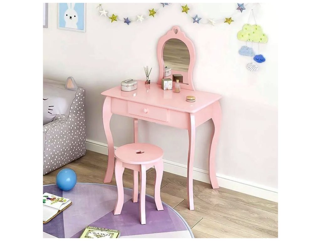 Predstavujeme vám roztomilú toaletku pre dievčatá, ktorá určite vzbudí nadšenie v každej malej princeznej. Táto fantastická toaletka bola navrhnutá s ohľadom na pohodlie a zábavu a vytvára tak jedinečné miesto, kde si dieťa môže užívať okamih len pre seba. Toaletka bude skvele vyzerať v každej izbe malej elegantky. Má veľké krásne zrkadlo, zásuvku na príslušenstvo a pohodlnú stoličku.