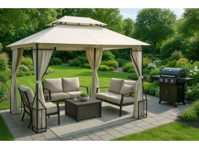 Luxusný záhradný pavilón 4x3x2,8 m - béžový - moskytiéra + plné steny – Naskladňujeme - prijímame predobjednávky€329