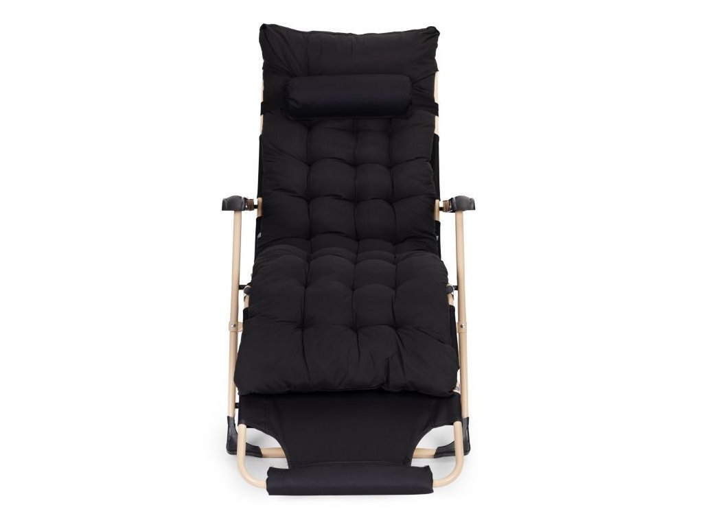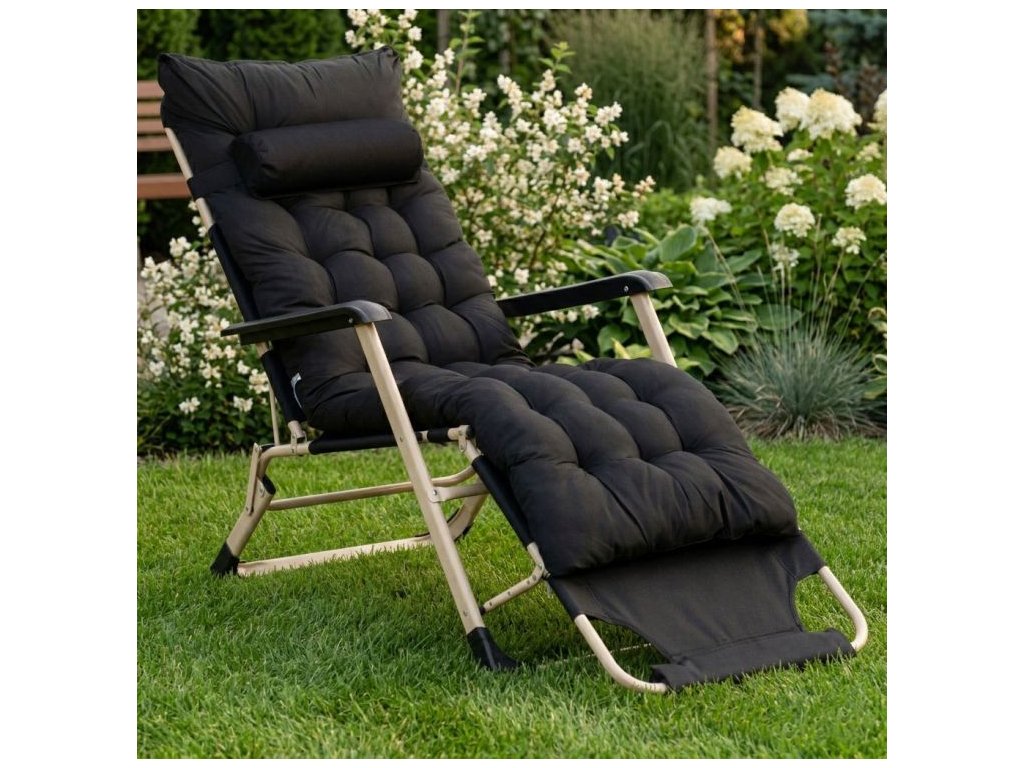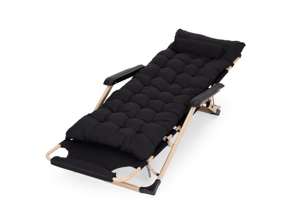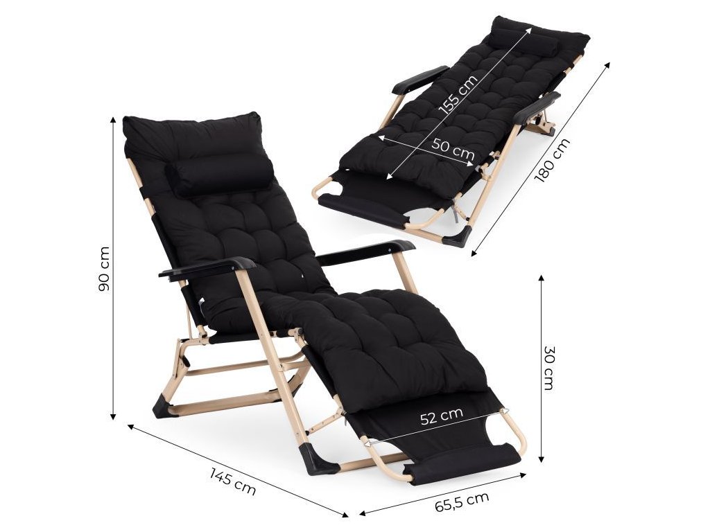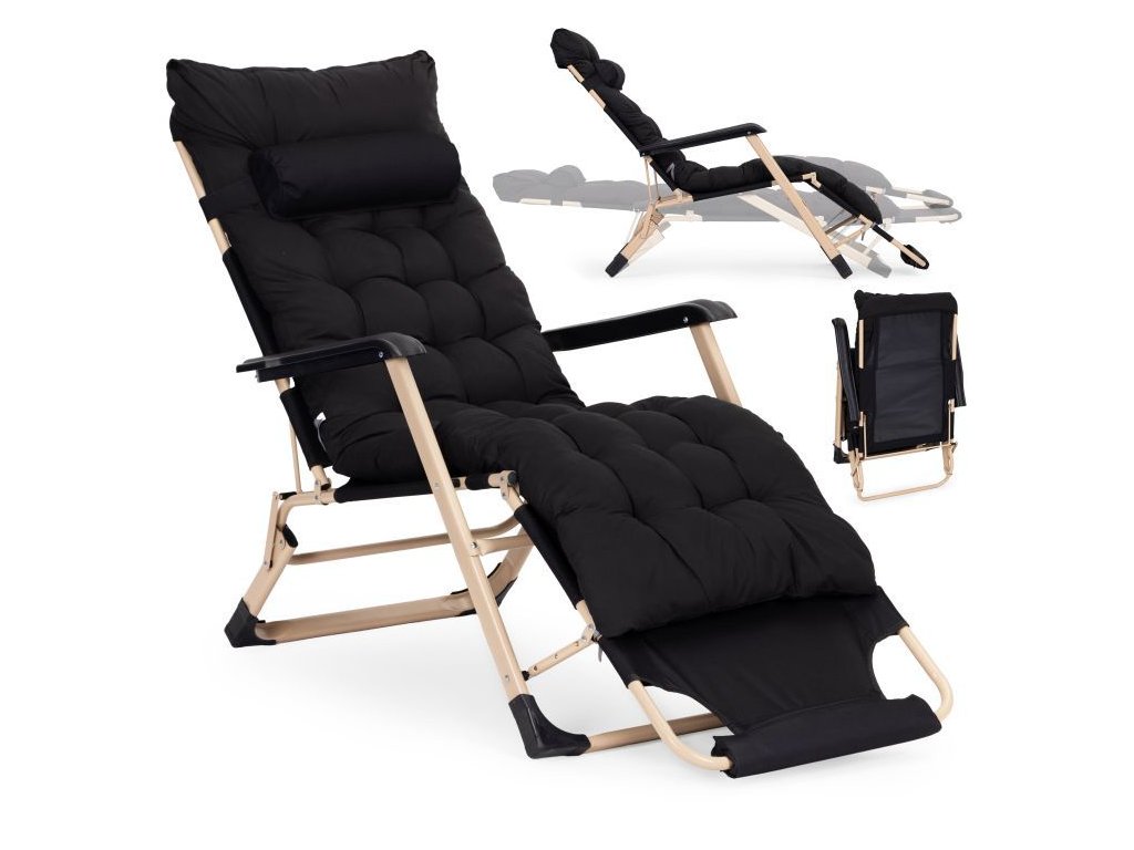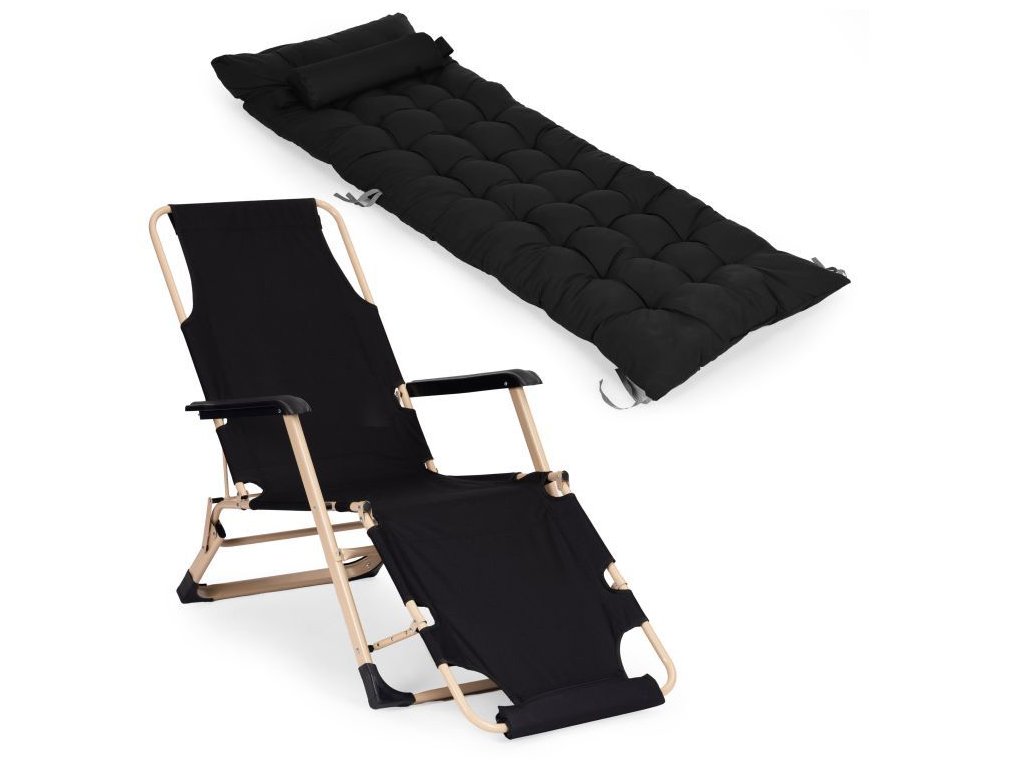 Záhradné plážové ležadlo 2 v 1 s vankúšom, opierkou hlavy, nastaviteľnou opierkou nôh, čierne, zlatý rám