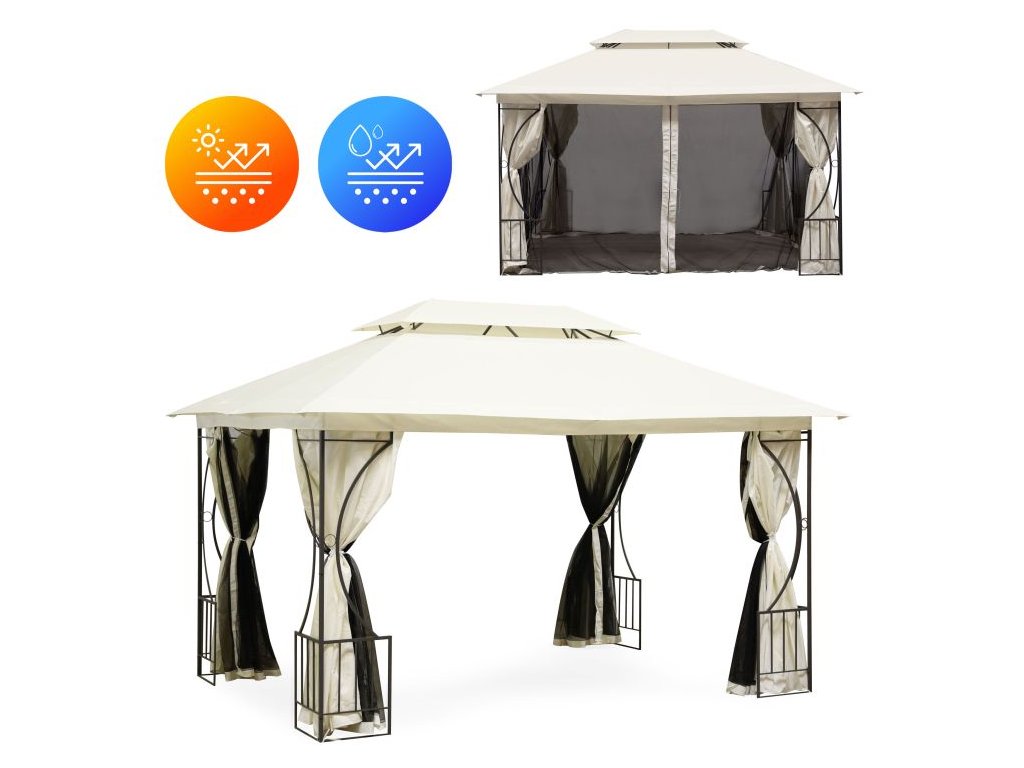 Luxusný záhradný pavilón 3x3x2,8 m - béžový - moskytiéra + plné steny