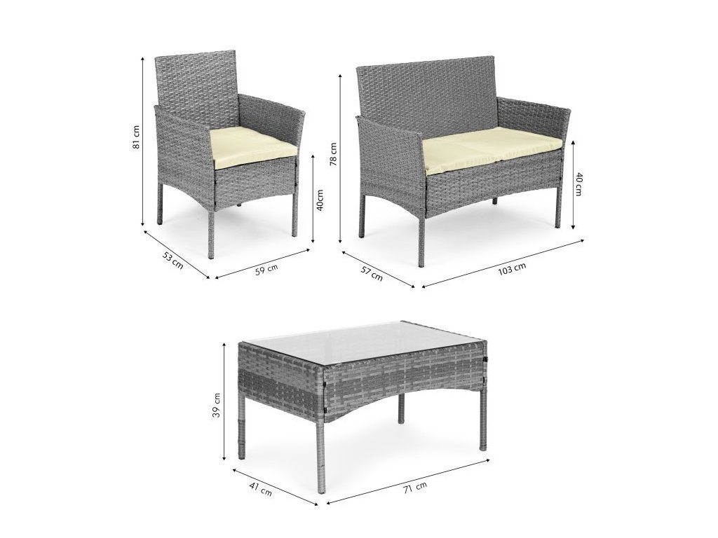 Súprava nábytku sa vyznačuje robustnou konštrukciou, pokrytou vysokokvalitným technoratanom. To zaručuje trvanlivosť počas mnohých sezón a nábytok si zachová svoju eleganciu.