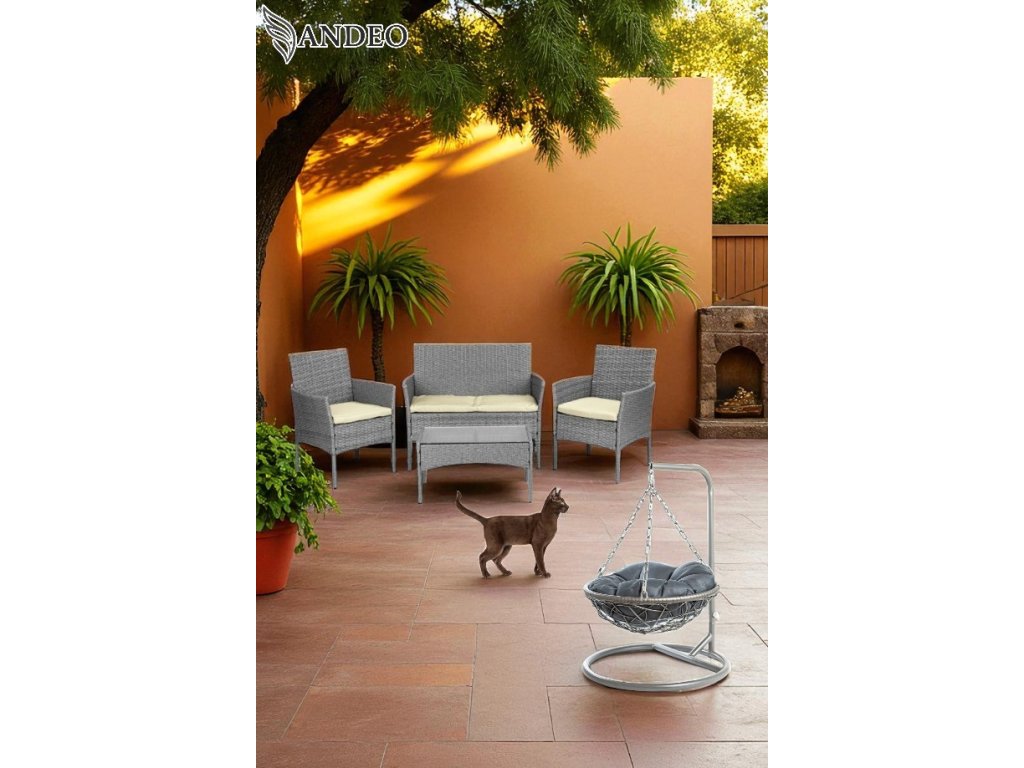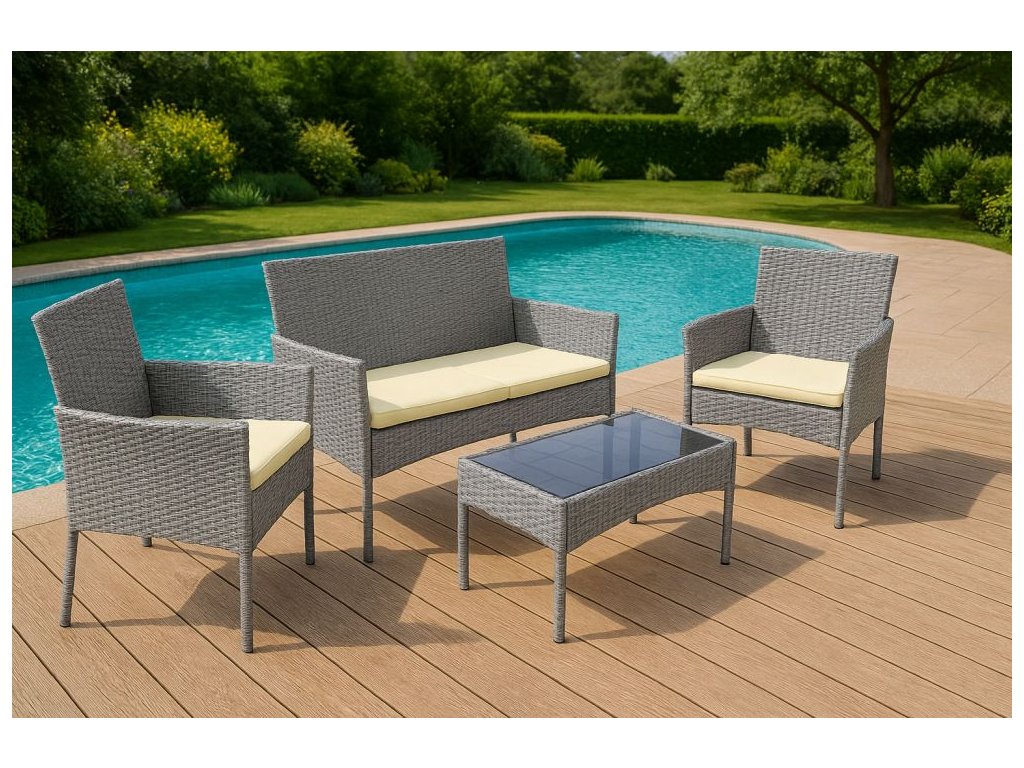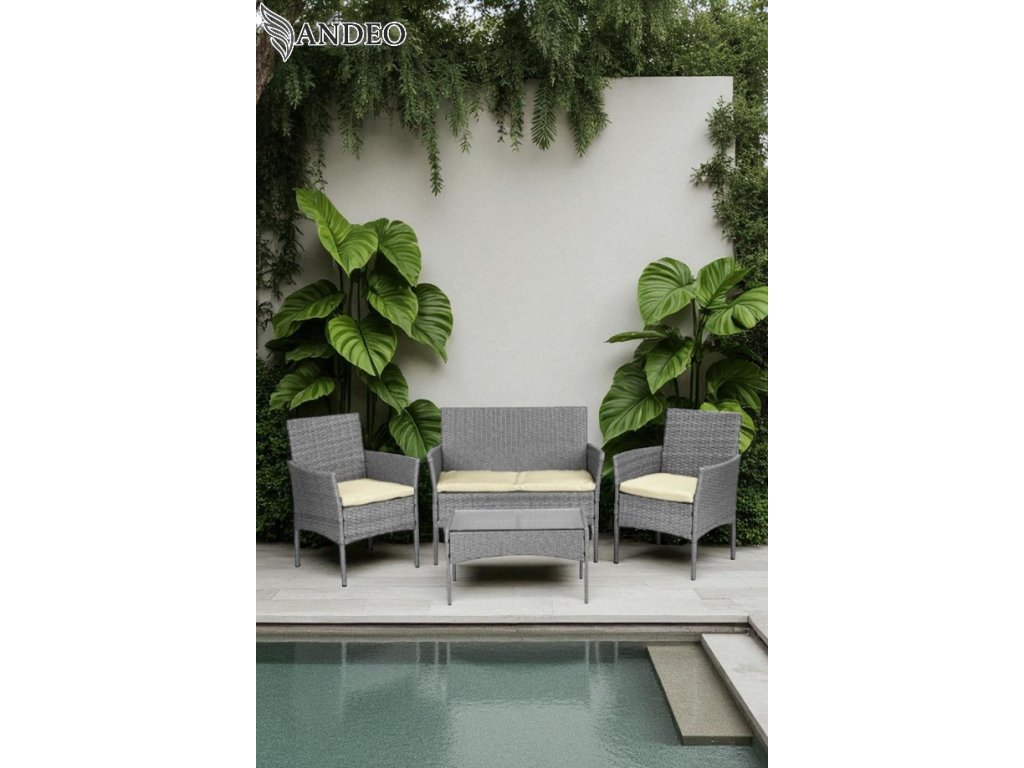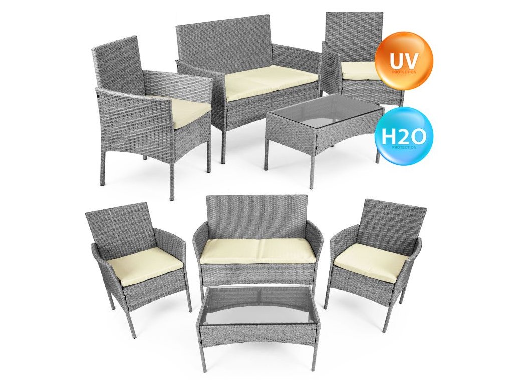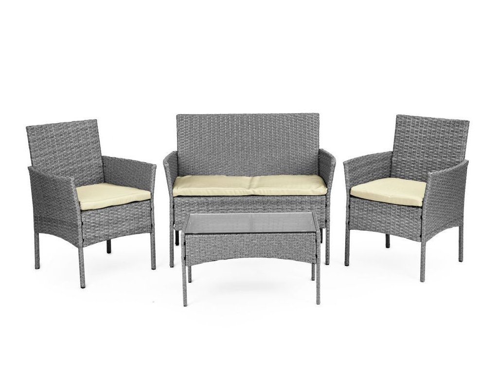 Záhradný set ratanového nábytku: Lavica + stolík + 2 kreslá - sivá