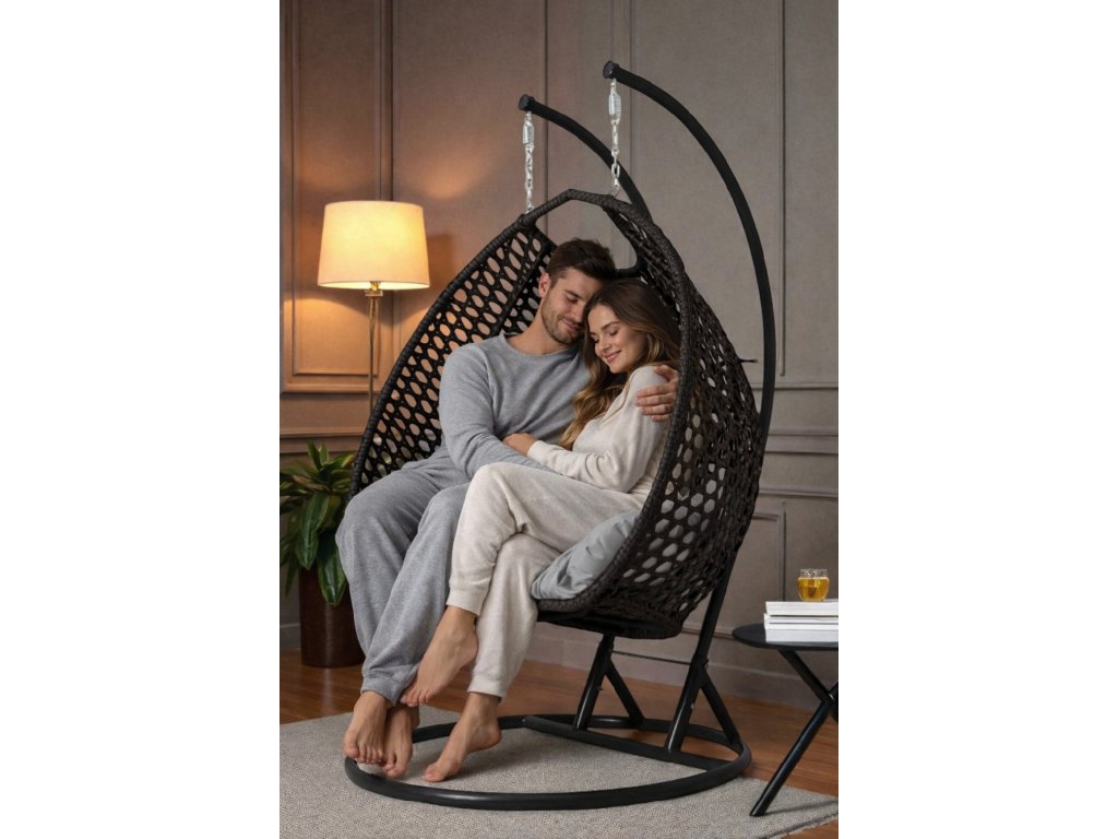 Kreslo ponúka komfortné sedenie pre dve osoby a zároveň sa stane pôsobivým dizajnovým prvkom každého priestoru. Závesné kreslo ARUBA je navrhnuté s dôrazom na kvalitu, pohodlie a odolnosť. Pevná oceľová konštrukcia poskytuje stabilitu a bezpečnosť, zatiaľ čo výplet z ratanu odoláva poveternostným vplyvom aj UV žiareniu. Extra hrubé a mäkké vankúše zaručujú komfort pri každom sedení – či už ide o popoludňajší odpočinok alebo romantický večer pod holým nebom.