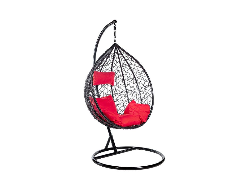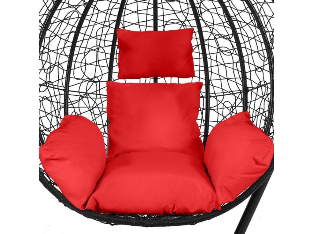 Závesné hojdacie kreslo MADRID EXTRA, nosnosť 150 kg- čierne + červené vankúše