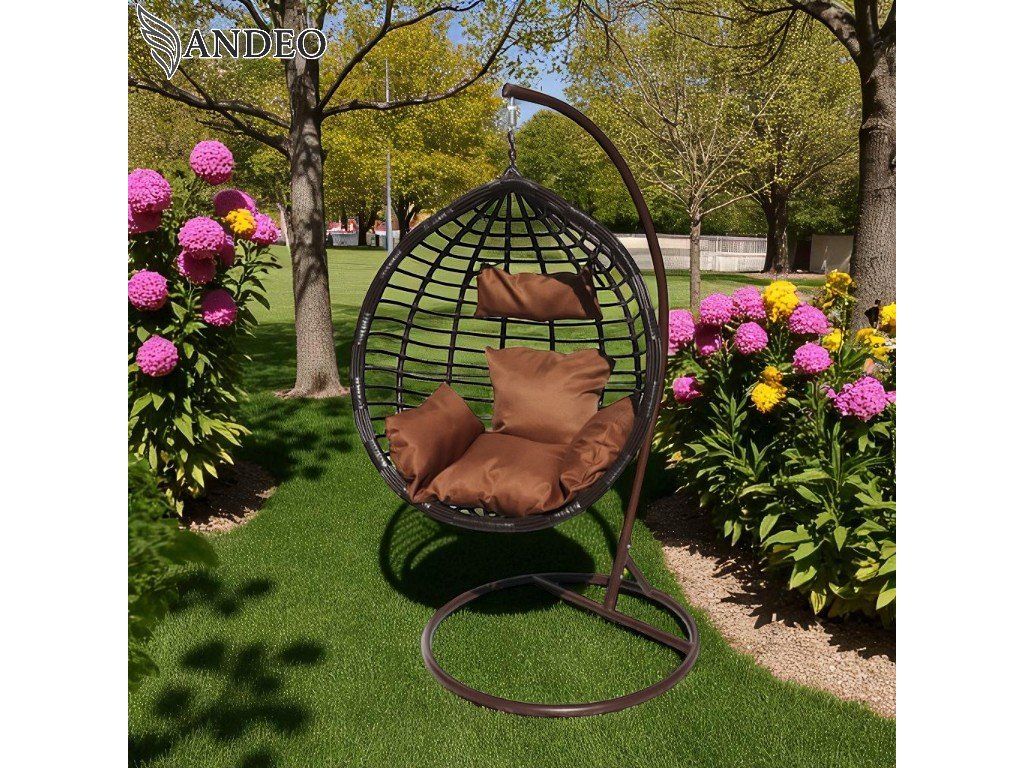 Vytvorte si luxusný kútik na oddych s týmto moderným závesným hojdacím kreslom. Minimalistická hnedá konštrukcia a hnedý výplet vytvárajú elegantný vzhľad, ktorý perfektne zapadne do interiéru aj exteriéru. Hnedý vankúš s mäkkou výplňou poskytuje vysoký komfort pri relaxácii, čítaní alebo len tak pri hojdacom pohybe.