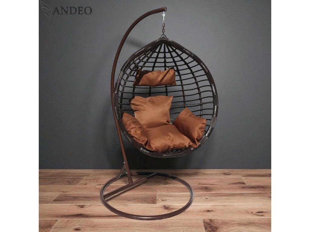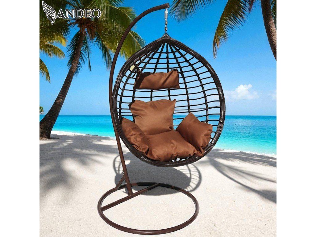 Závesné hojdacie kreslo MAUI EXTRA - hnedé + hnedé vankúše