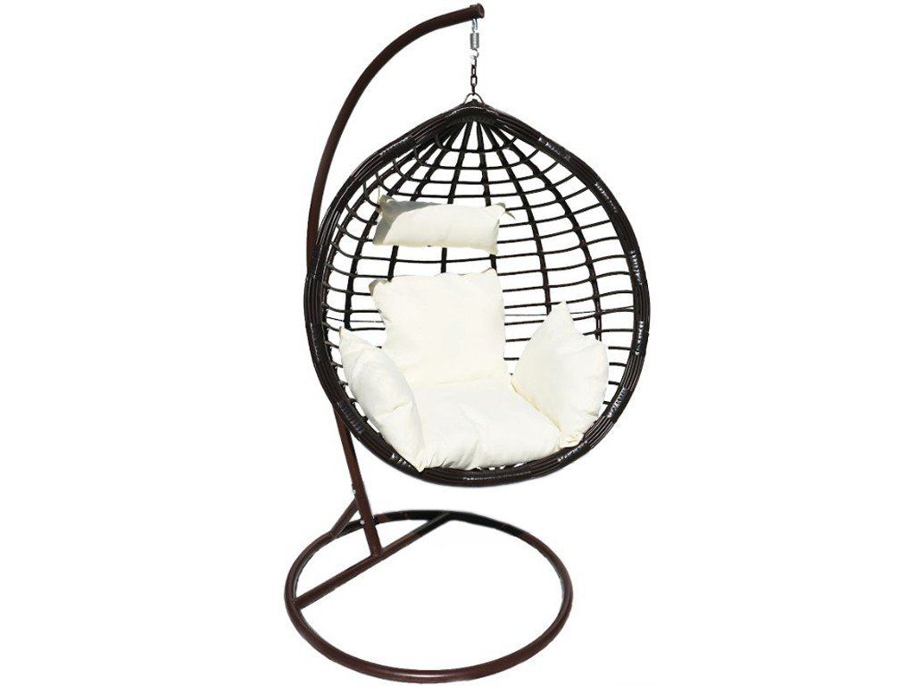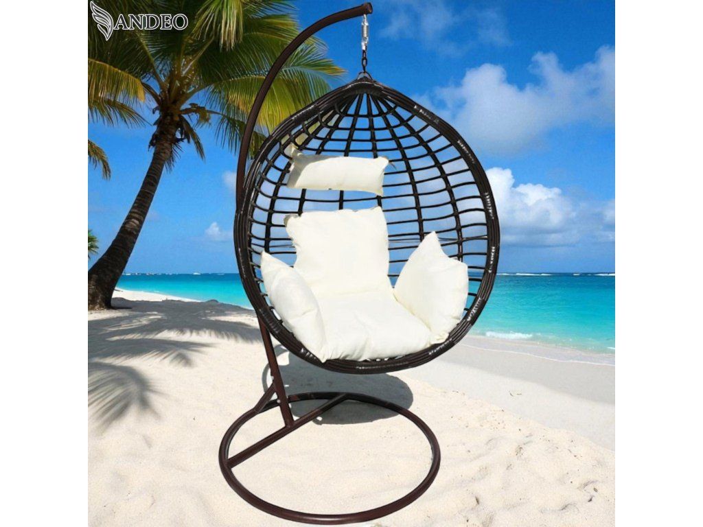 Závesné hojdacie kreslo MAUI - hnedé + biele vankúše