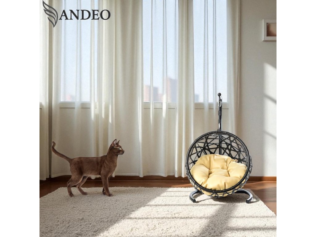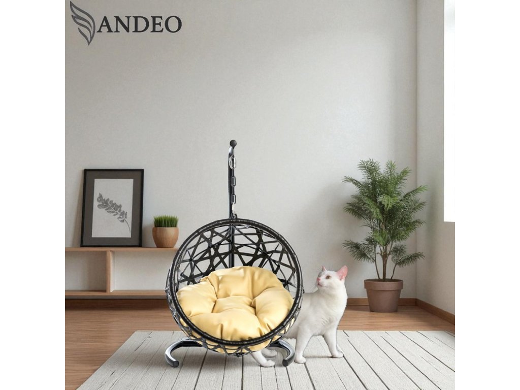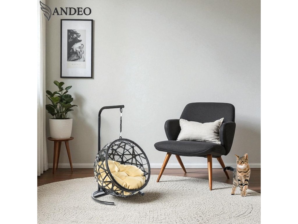 Závesné hojdacie kreslo pre mačky MOON - čierno béžové