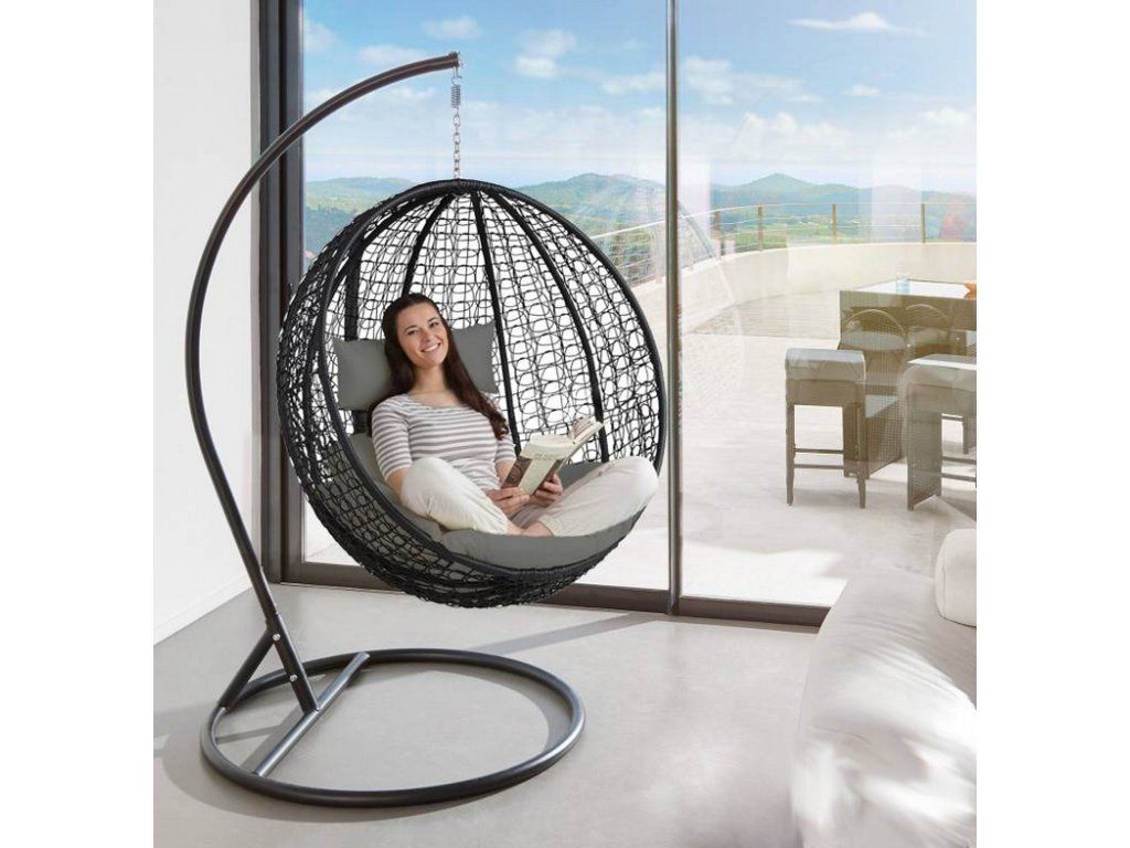Závesné hojdacie kreslo SICÍLIA – čierna elegancia a pohodlie