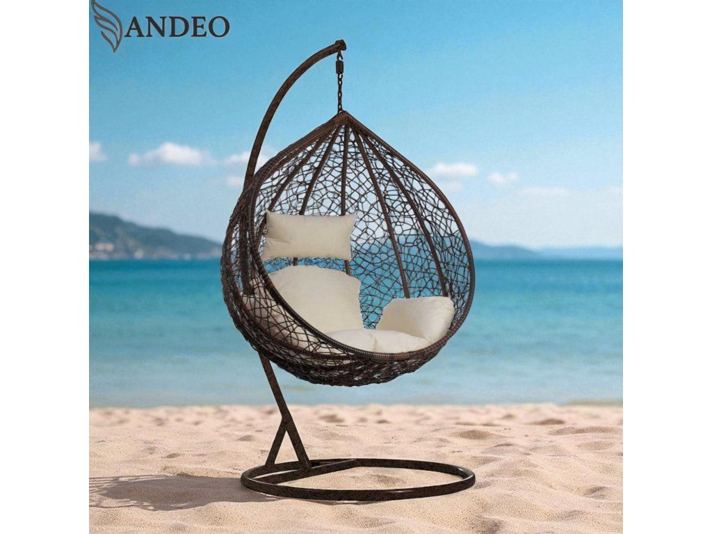 Vytvorte si luxusný kútik na oddych s týmto moderným závesným hojdacím kreslom. Minimalistická hnedá konštrukcia a hnedý výplet vytvárajú elegantný vzhľad, ktorý perfektne zapadne do interiéru aj exteriéru. Béžový vankúš s mäkkou výplňou poskytuje vysoký komfort pri relaxácii, čítaní alebo len tak pri hojdacom pohybe.