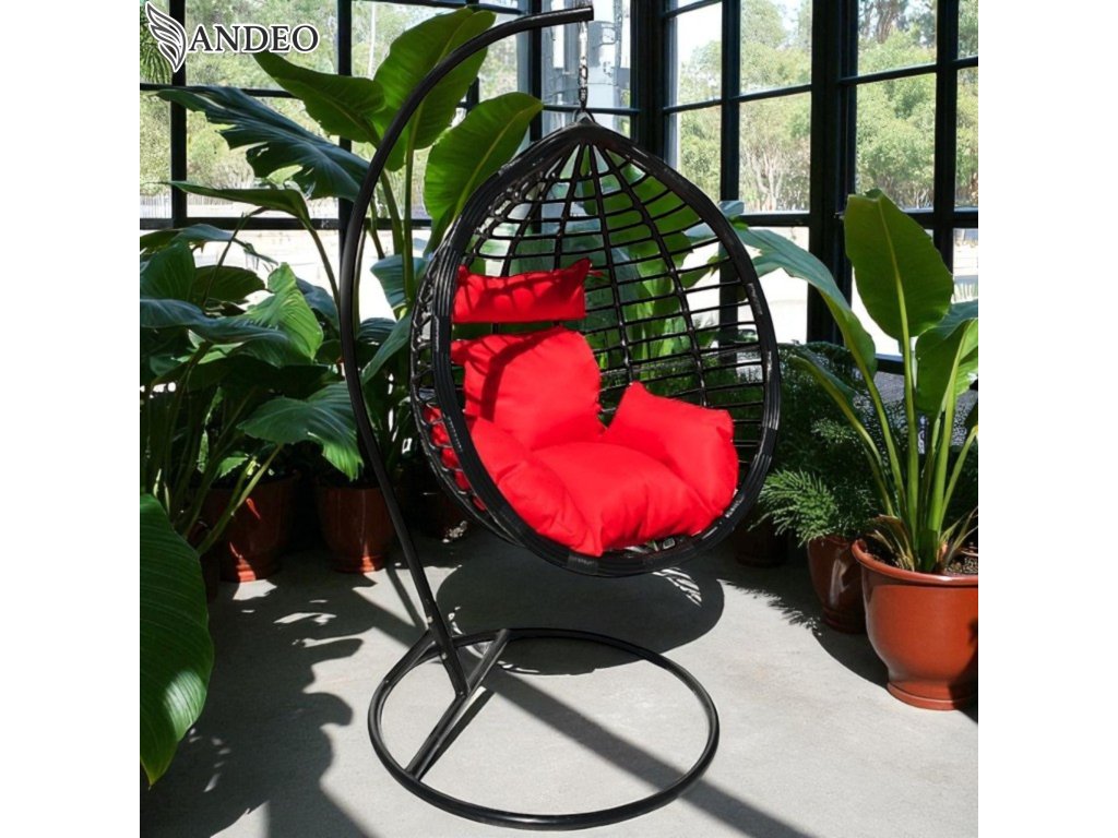 Závesné hojdacie kreslo TOBAGO EXTRA - čierne + červené vankúše