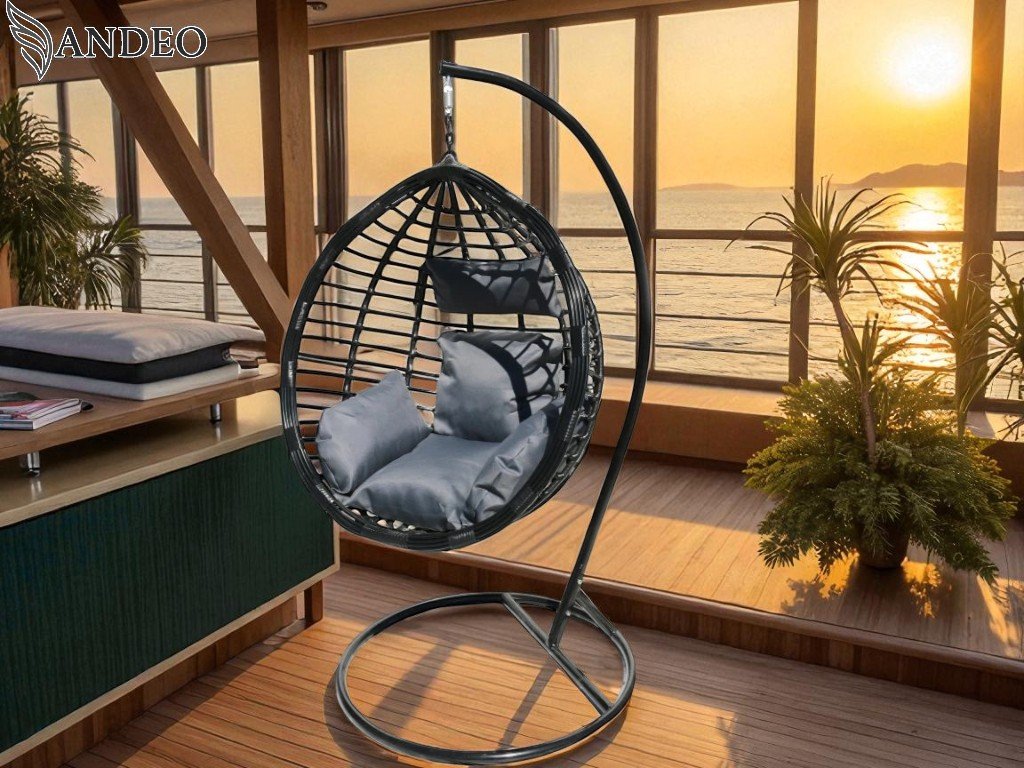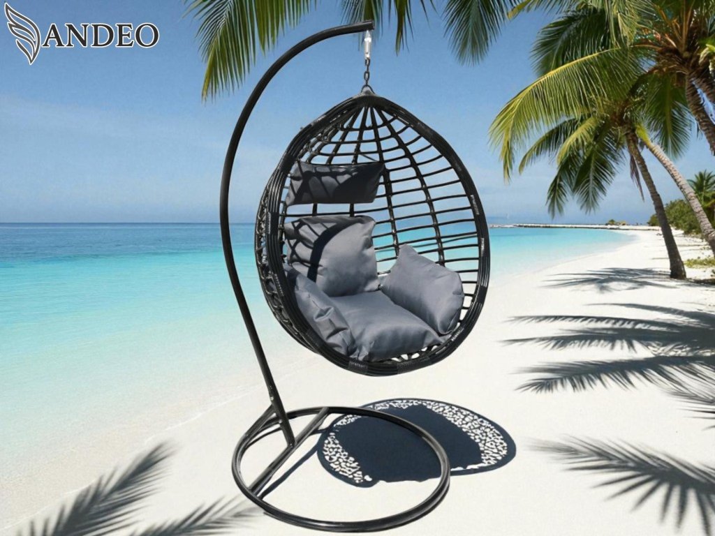 Závesné hojdacie kreslo TOBAGO EXTRA – čierna elegancia a pohodlie